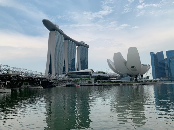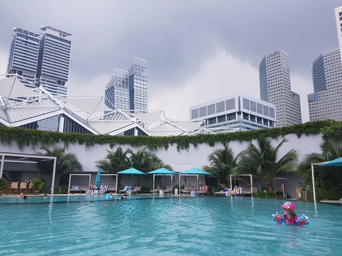 We splurged a bit for these last nights, staying in the excellent Pan Pacific Singapore, which will easily end up being the best hotel we’re likely to ever stay in. It’s not the iconic Marina Bay Sands, but it’s got something the MBS will never have – an unrivalled view of the downtown core and the Marina Bay Sands! The rooftop lounge has an incredible view and was a wonderful place to have a drink after sunset – adults only though so we had to take turns.