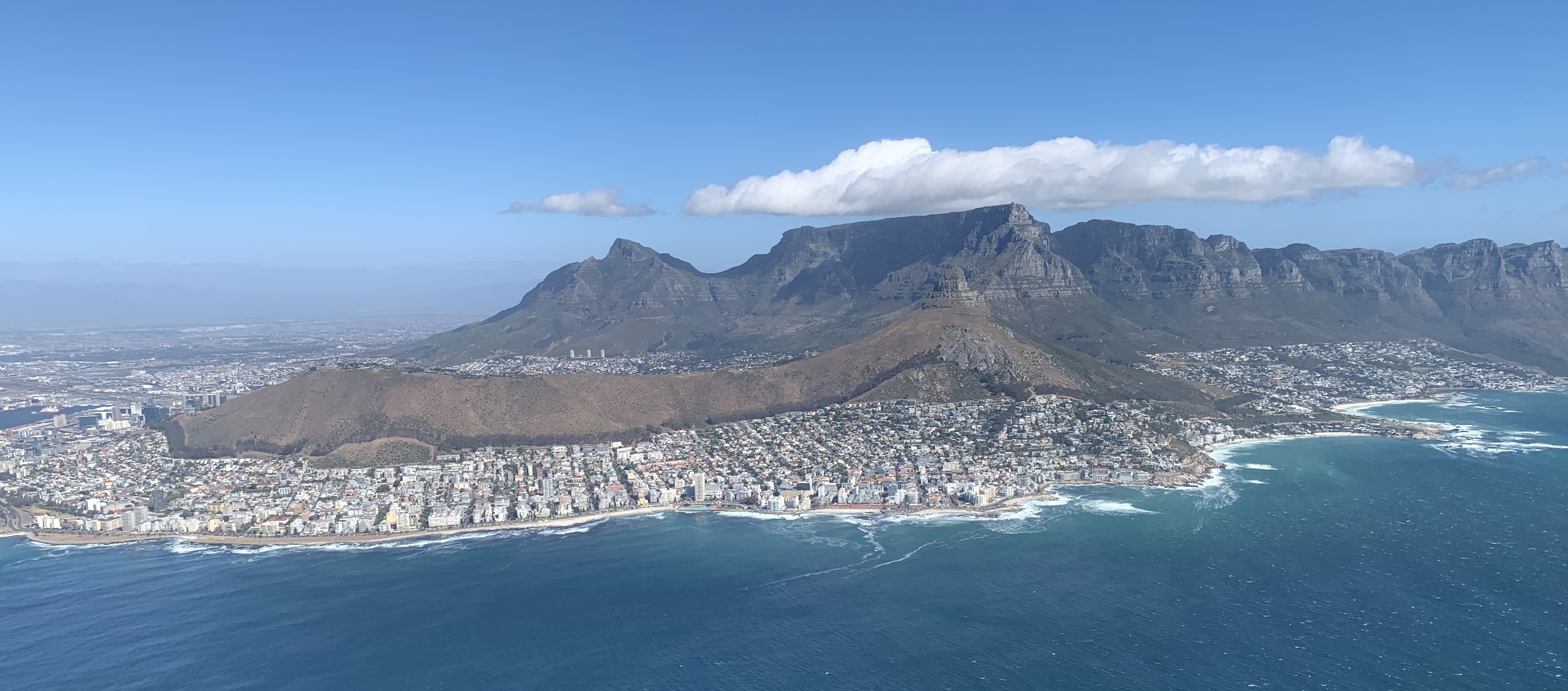 After renting a car for the remainder of our trip: next up – a bucket list item – what better way to spend a few minutes on a bluebird day in Cape Town than a scenic helicopter flight!