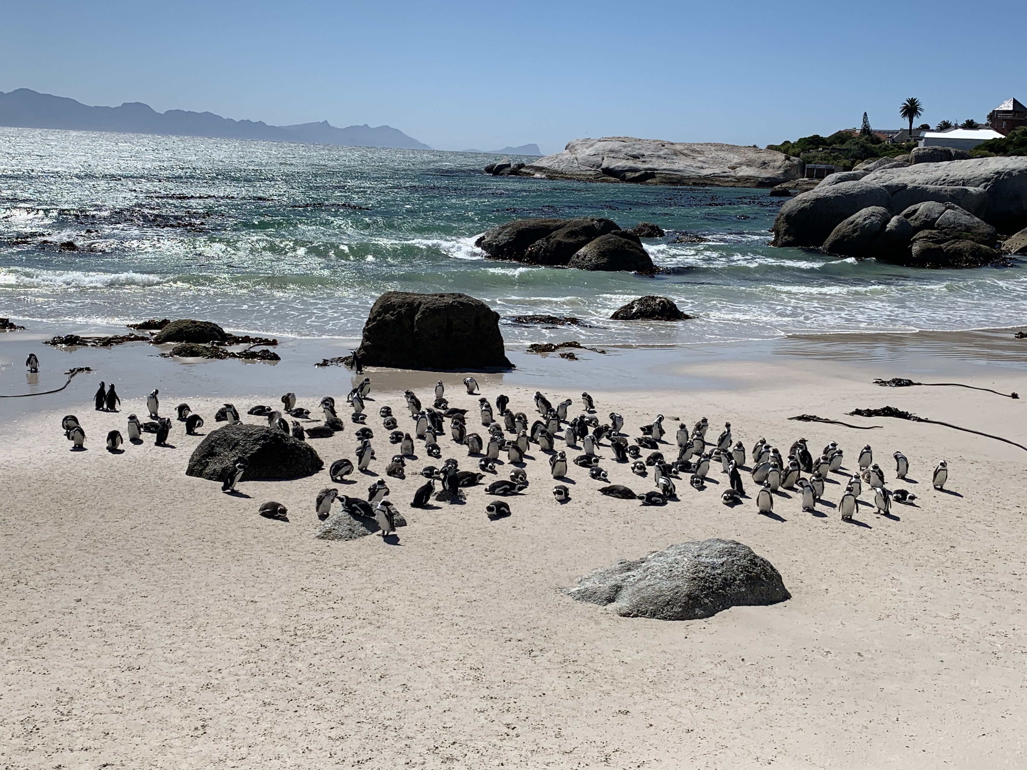 The next morning we got up really early for trip out of town! We’ve kicked our colds now just in time for the nice weather – perfect. First stop of the day – the Penguins of Boulders Beach! So cute!! I could just sit and watch these guys all day. If you haven’t heard of these guys before, there are hundreds of penguins in a colony just south of Simons Town and are in a national protected area. There are two boardwalks over the beach for penguin viewing, and further down there is a bathing beach where you can see or swim with the penguins – on their terms only!