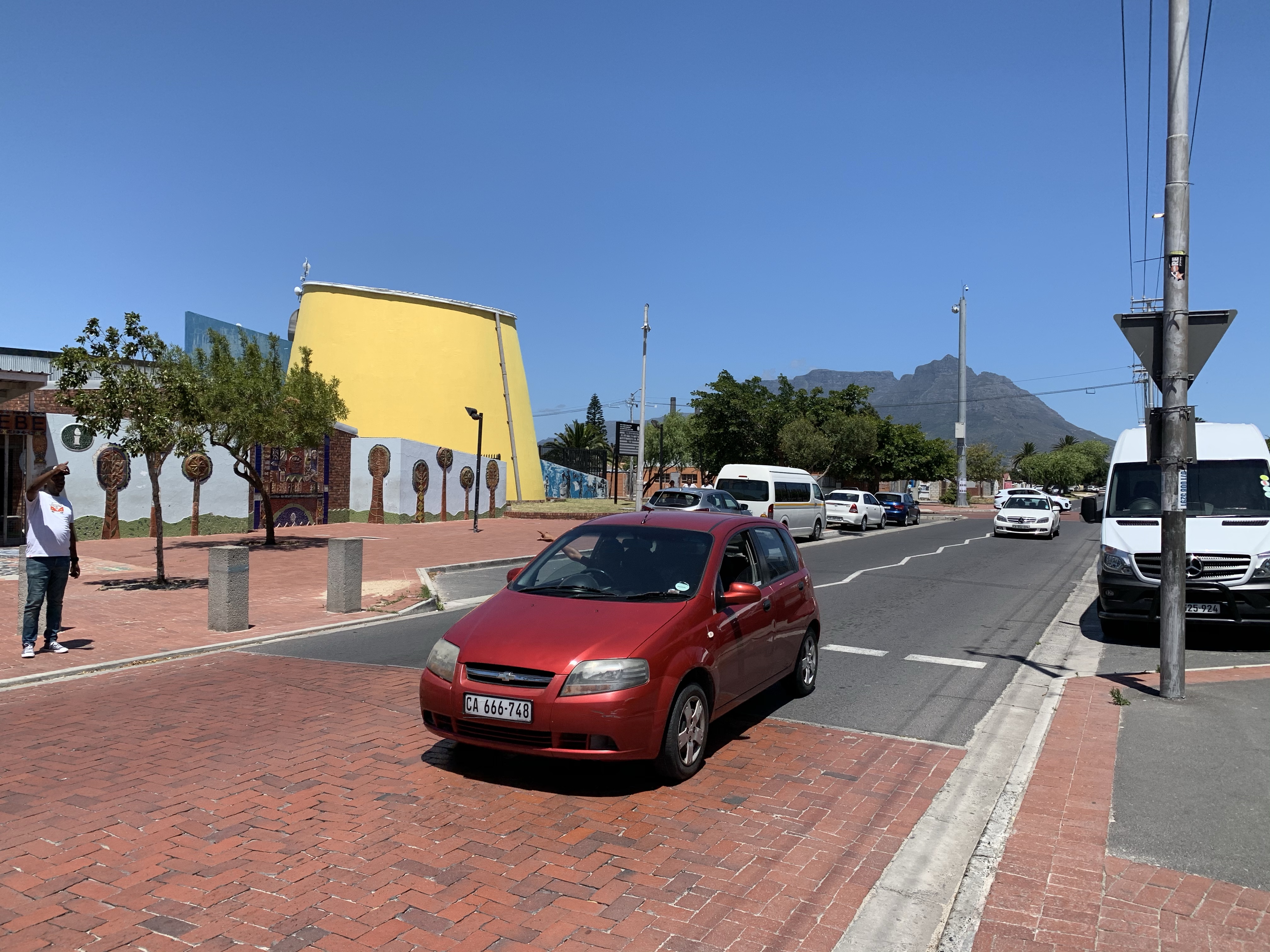 The main street of Langa, with a million dollar view of Table Mountain in the distance.