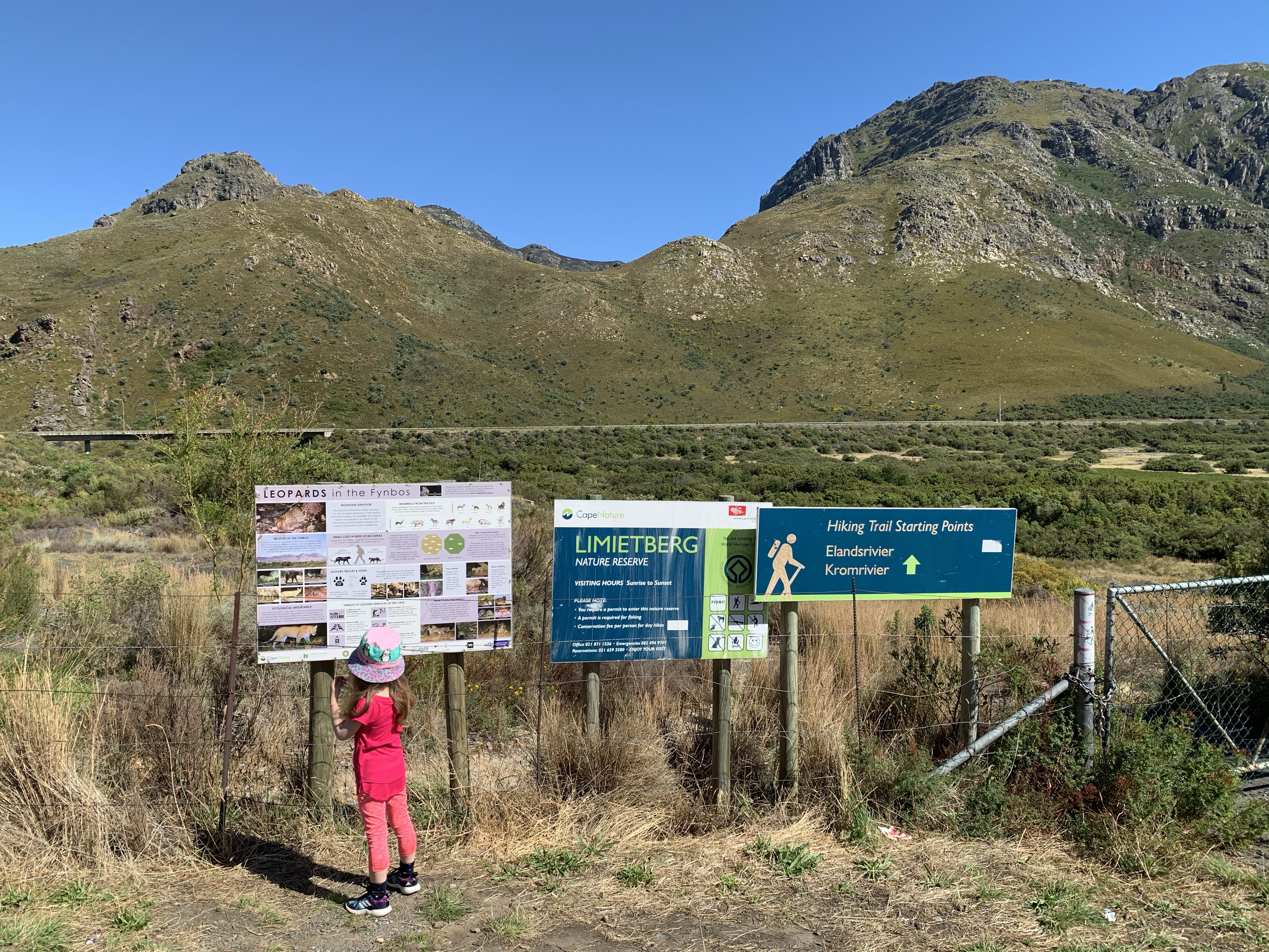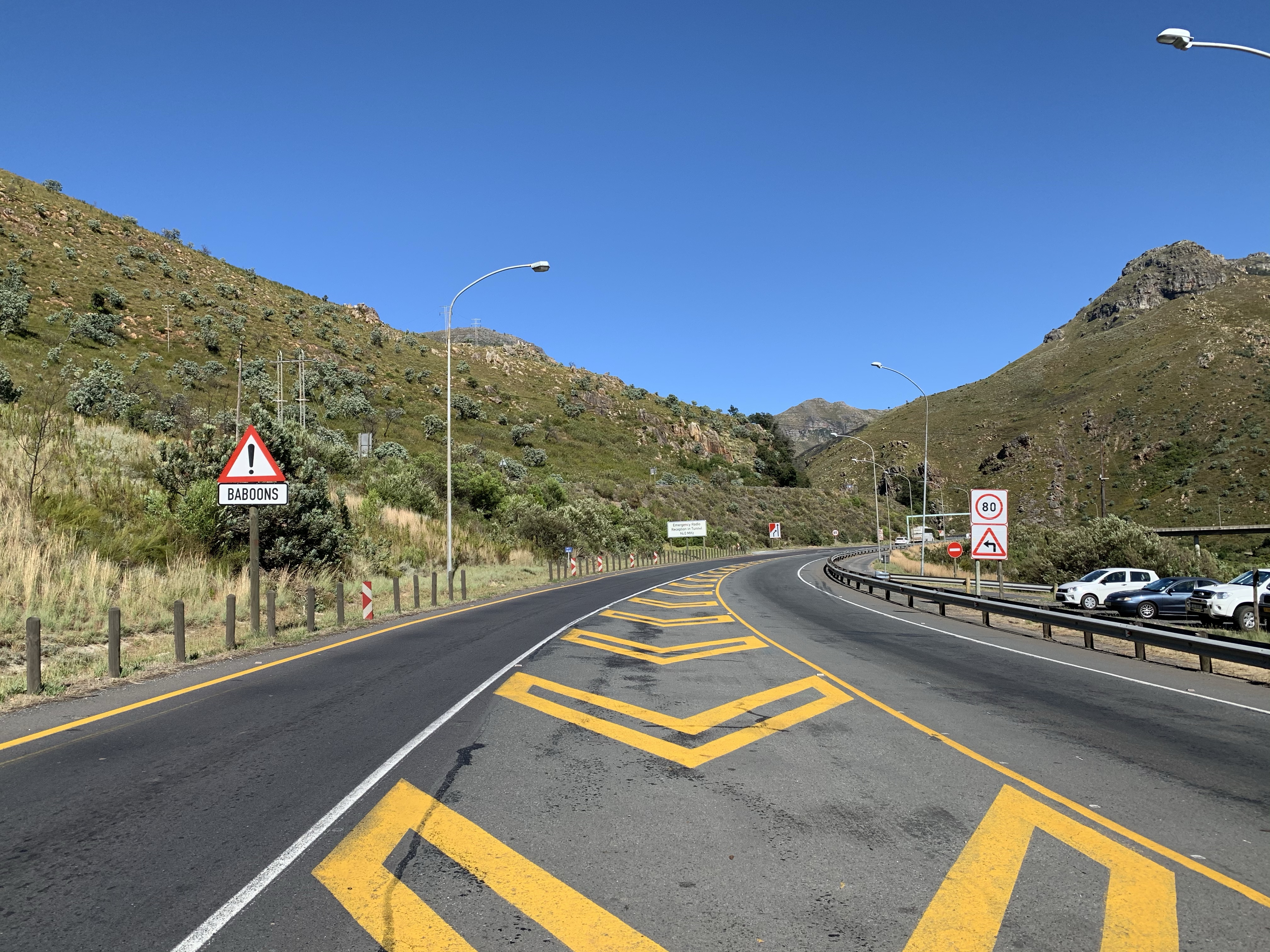 On New Years Eve we set out for a hike in one of the nature reserves about half an hour away. I wanted to take a photo of the road just opposite the trailhead parking – note the warning ! Baboons ! sign on the left. These were everywhere, just like the deer warning signs you see in Canada. We didn’t see any baboons until later in the trip though…