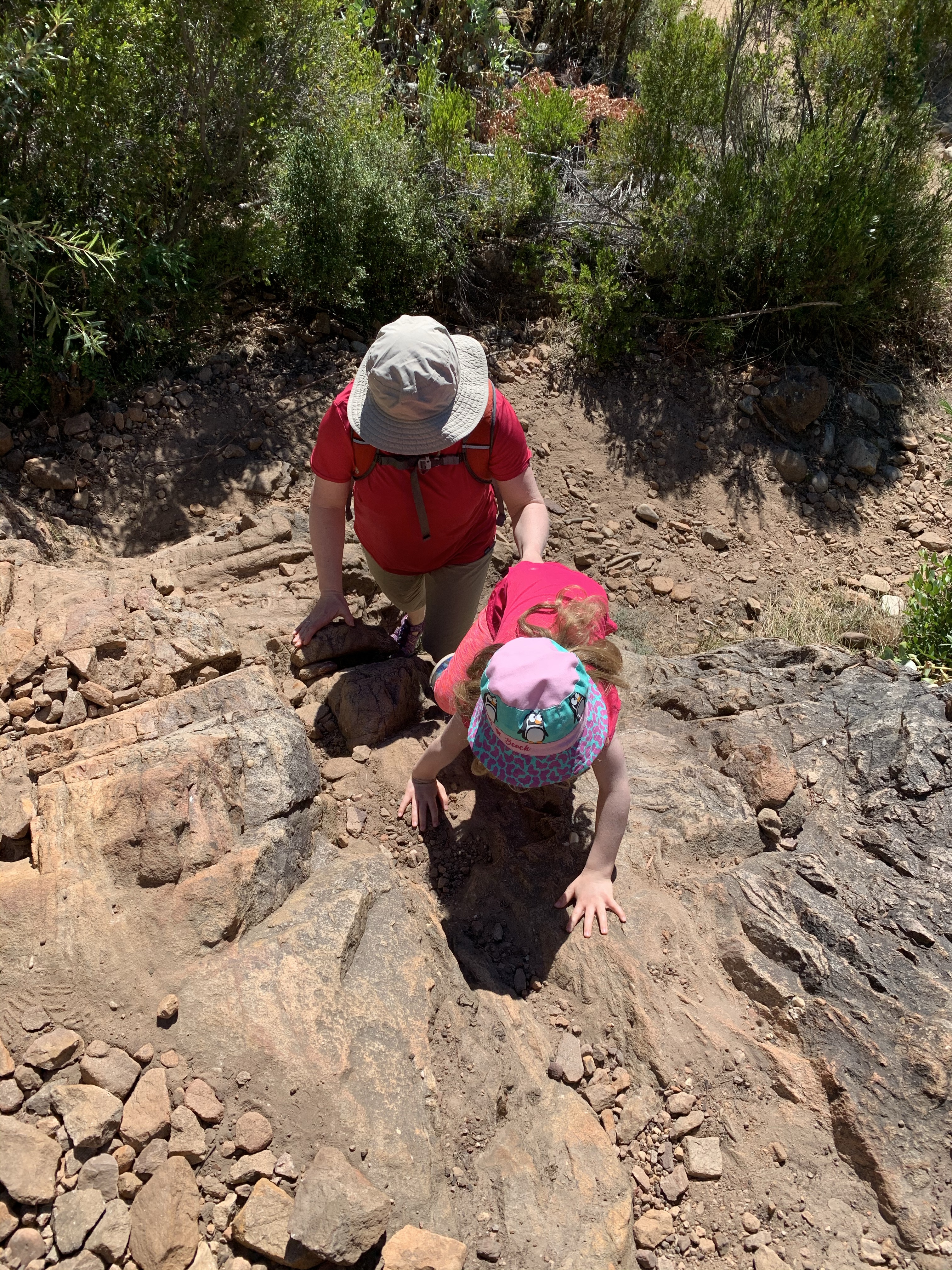 There was full hands on scrambling for Elinka more or less 10 minutes from the car! She had fun with it initially, but as the sun grew hotter and the day longer, it just became tiring. We did have gorgeous views the whole way, though.