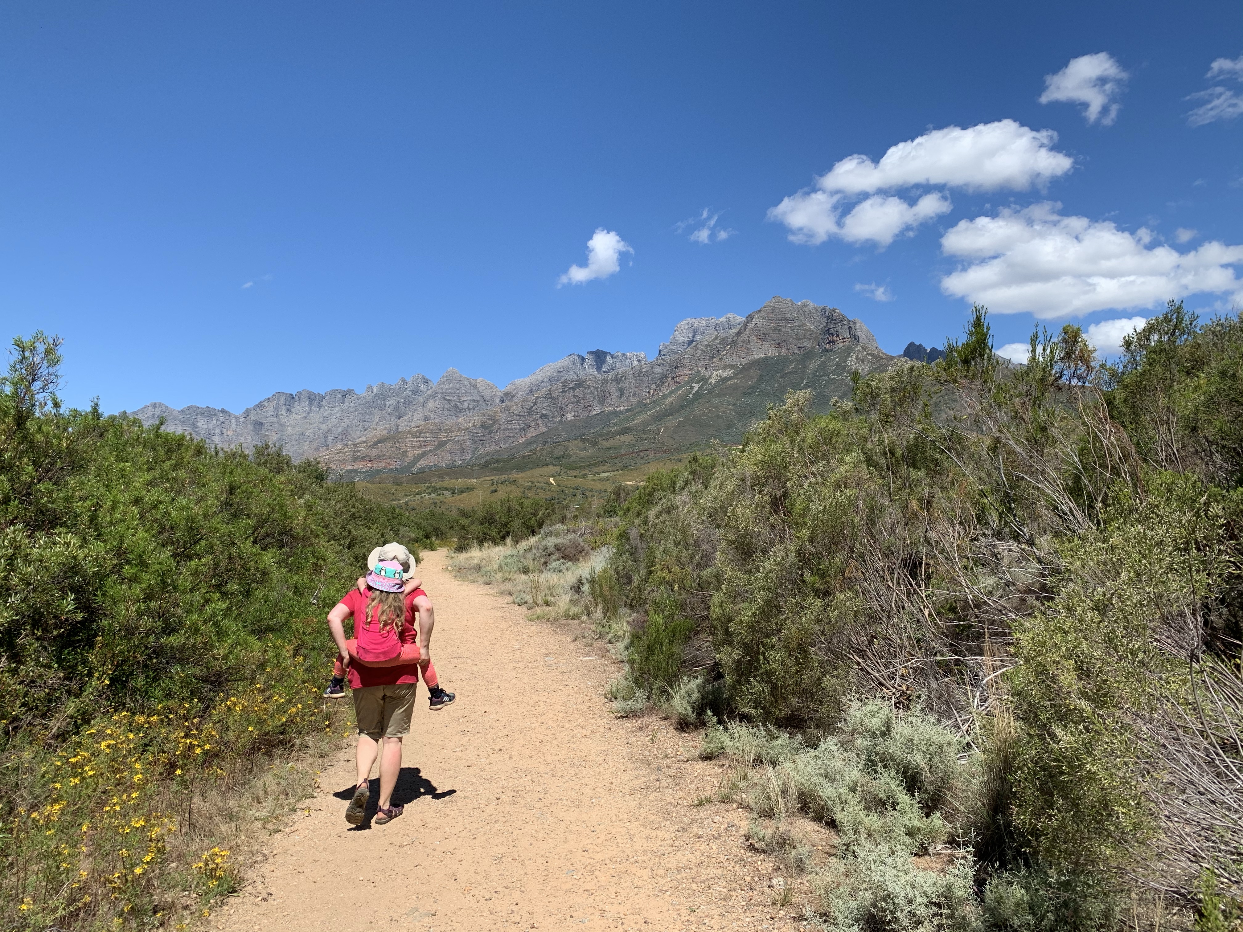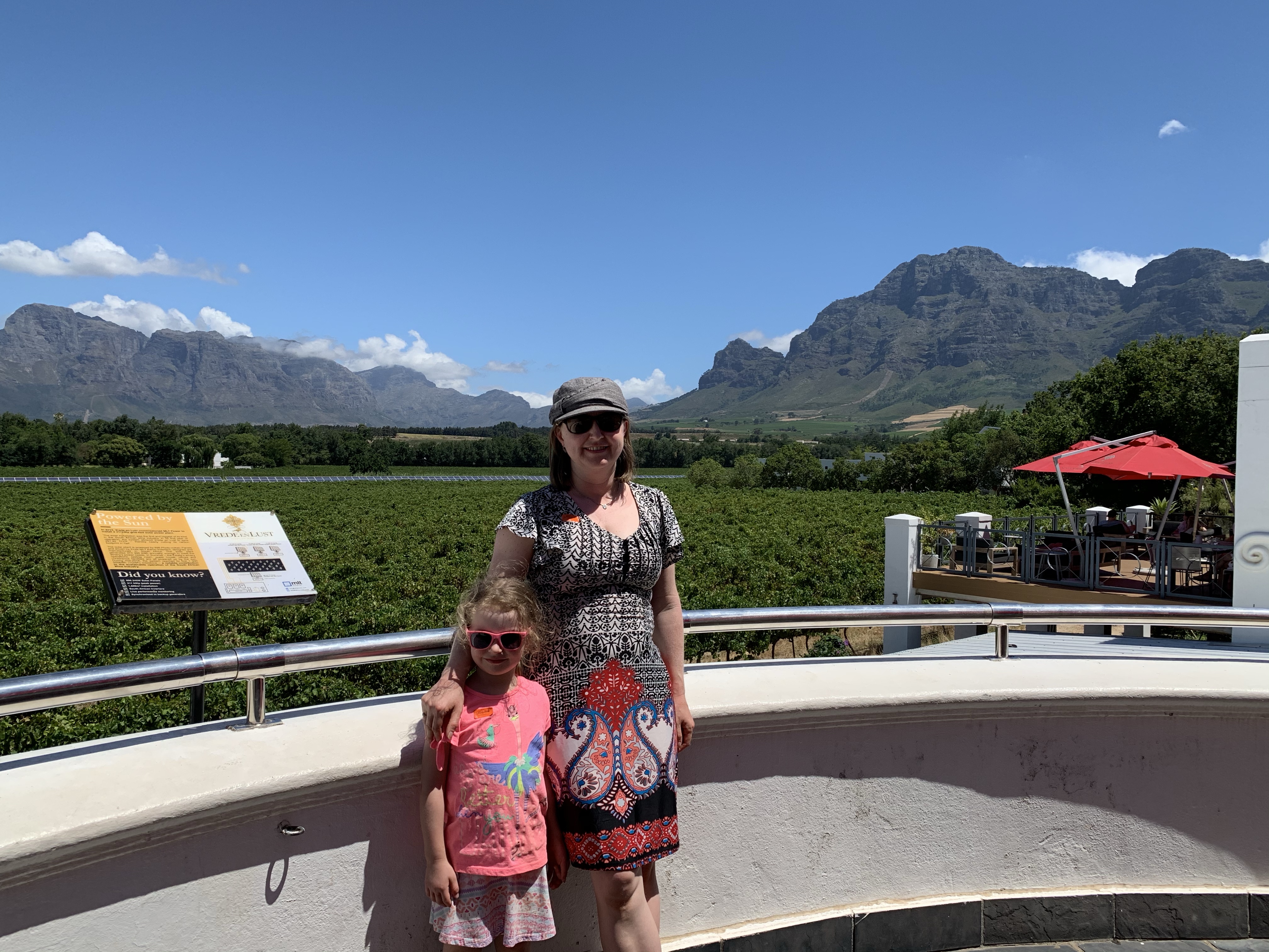 The next stage of our trip brings us about an hour east of Cape Town to the Cape Winelands. We stopped for lunch at one of the first wine estates on the way, Vredenheim. In addition to high quality, inexpensive wines, they offered delicious estate made grape juice for kids in the tasting room, a jungle gym outside the restaurant patio, and beautiful views from the garden. The yummy food came out quickly, but I’m not sure what happened after that as it took almost an hour to get a coffee and dessert after the main meal…