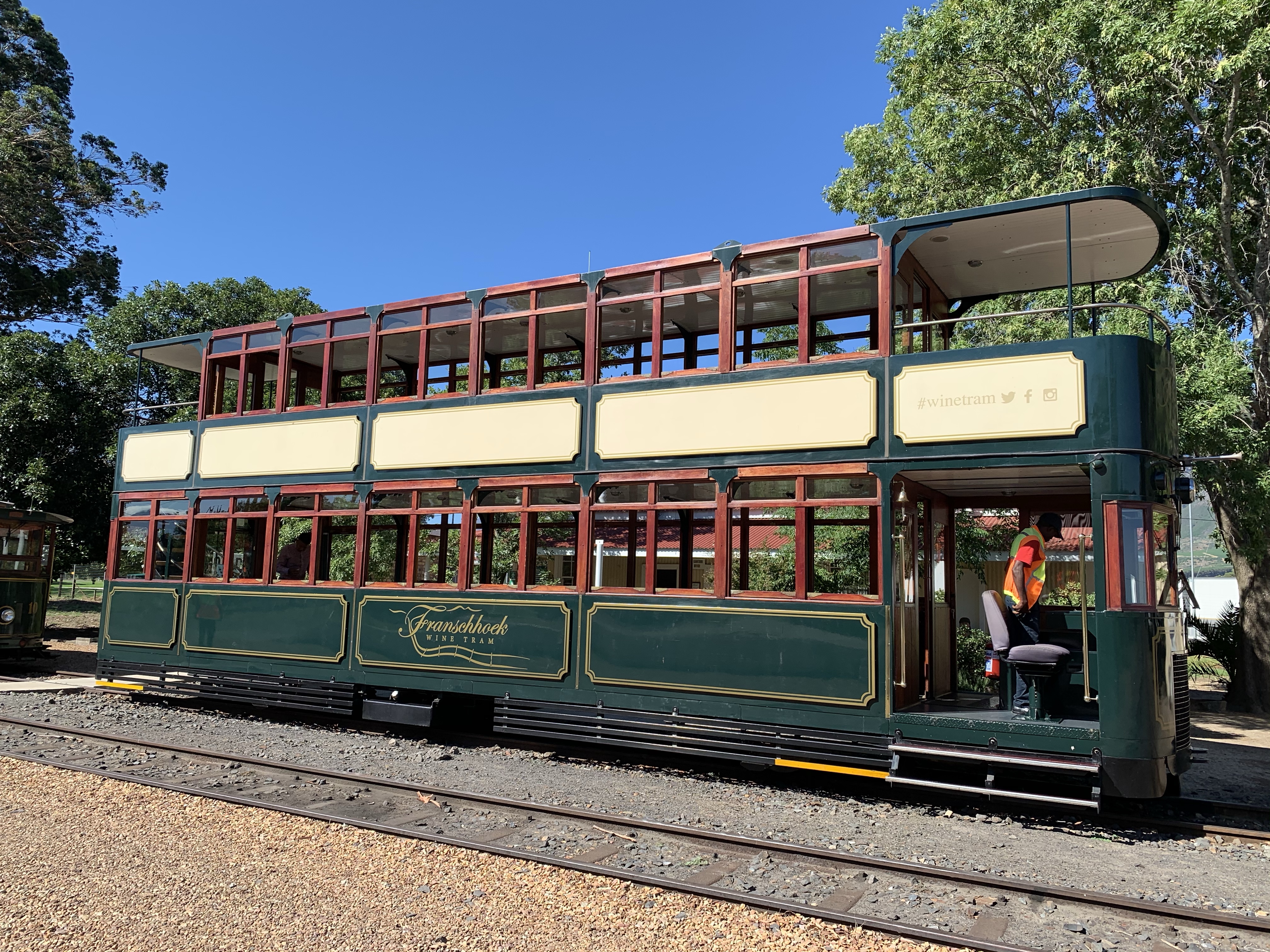 Not all of the wine estates on the tour are next to the rail line so the outlying stops are served by an old-tram style open air bus. They’ve got such an awesome arrangement. If you purchase wine for takeaway on your tour, you give it to the driver of any of the vehicles, they give you a sticker, then you pick it all up at the terminal station at the end so you don’t have to lug it around with you all day.