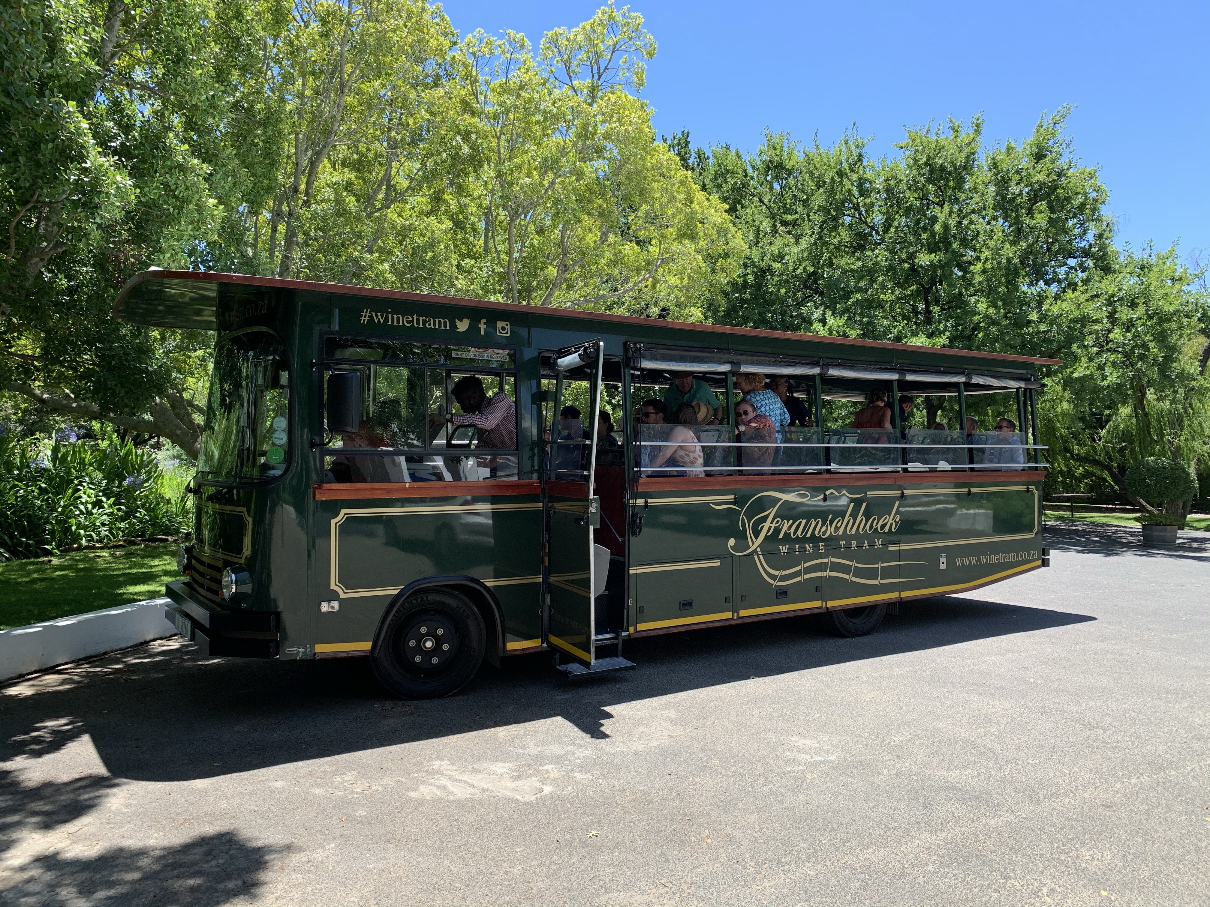 On Thursday our whole day was spent visiting wine estates on the other side of our base, using the wonderful Franschhoek Wine Tram. It was a great experience, since not only were we able to take a cheap Uber ride to and from the station, it was a great way to get around to a variety of estates we wouldn’t necessarily think of. I booked us into the Orange line tour as the pickup point and stops were all fairly close to home for us. There were several options for tours, some of them headed in the other direction and ended another 10-12 km away. There are literally dozens, maybe hundreds of wine estates around here!