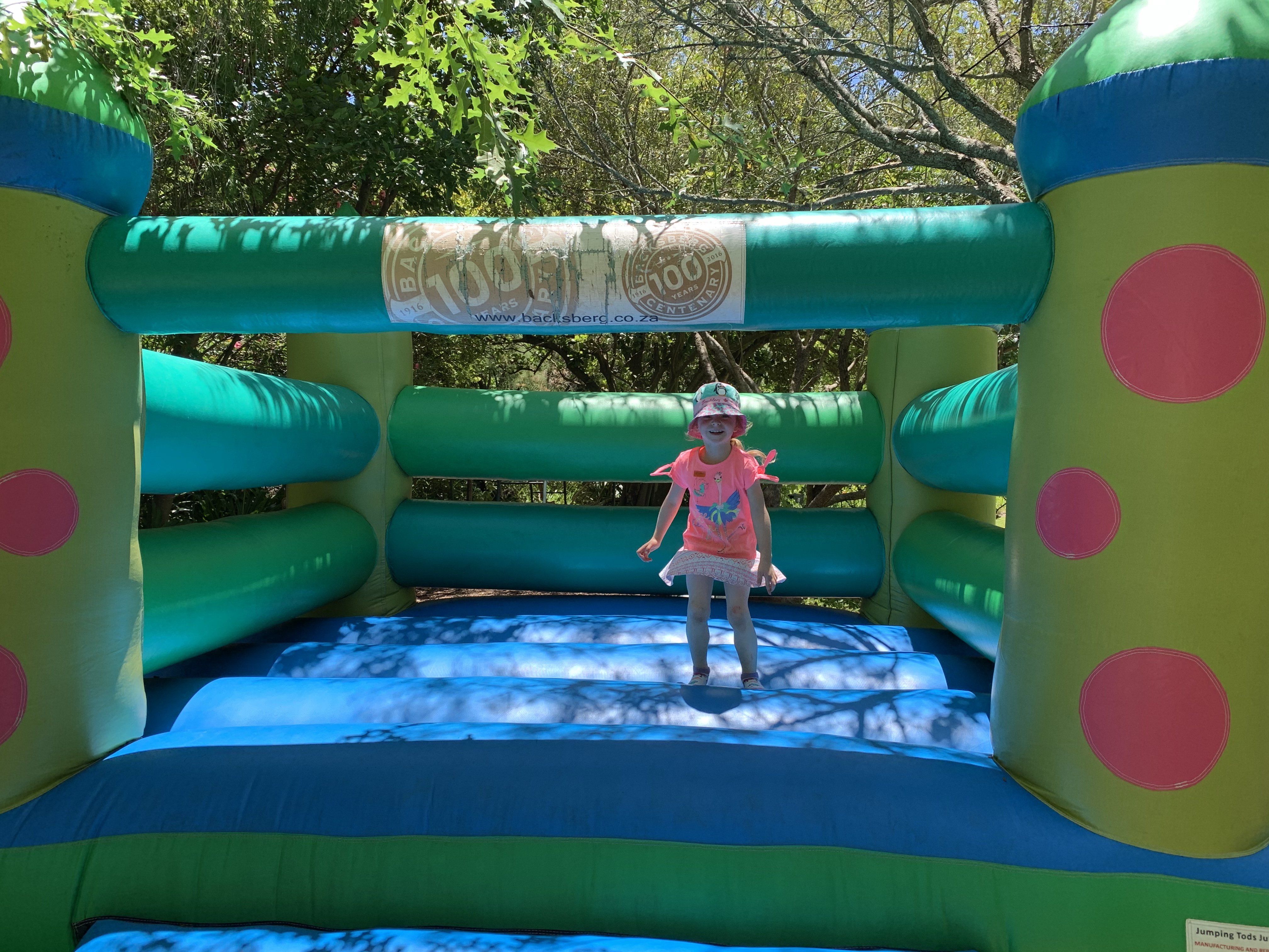 Our next stop was directly next door at Backsberg, directly next door. They had a bouncy castle not far from the tasting patio: approved!