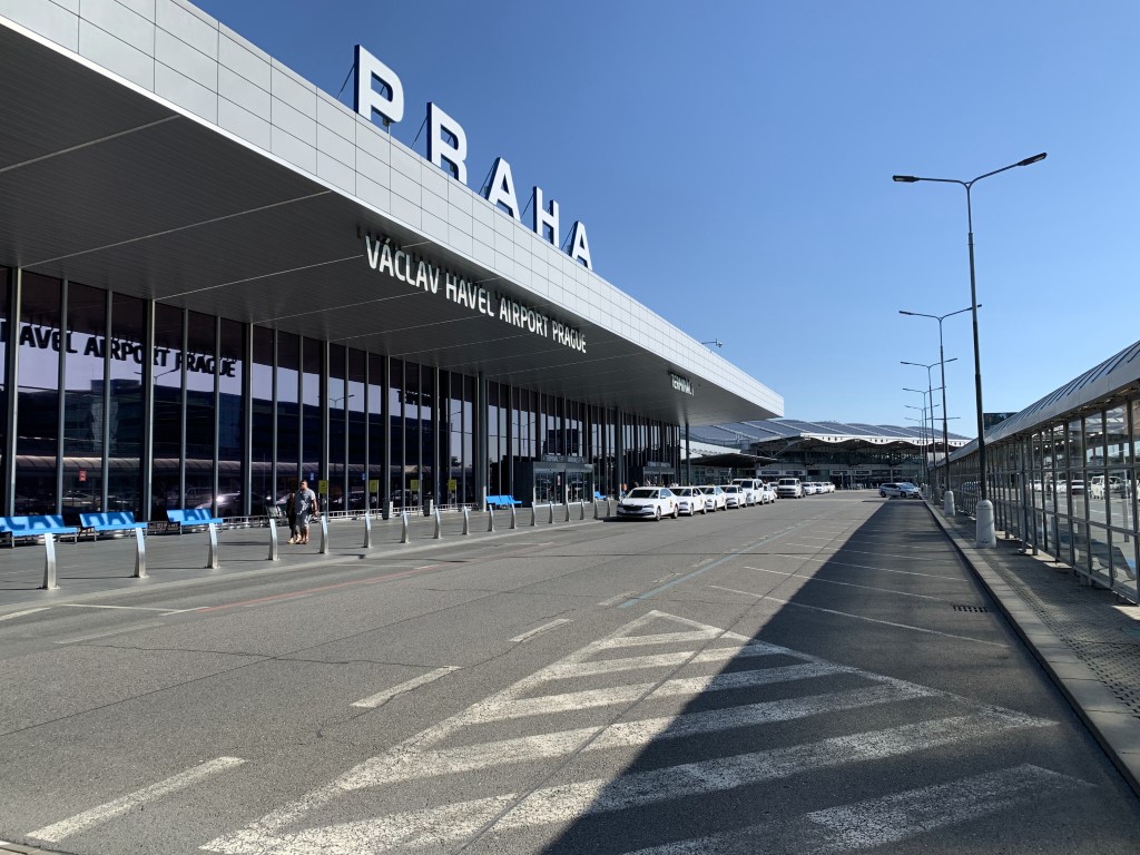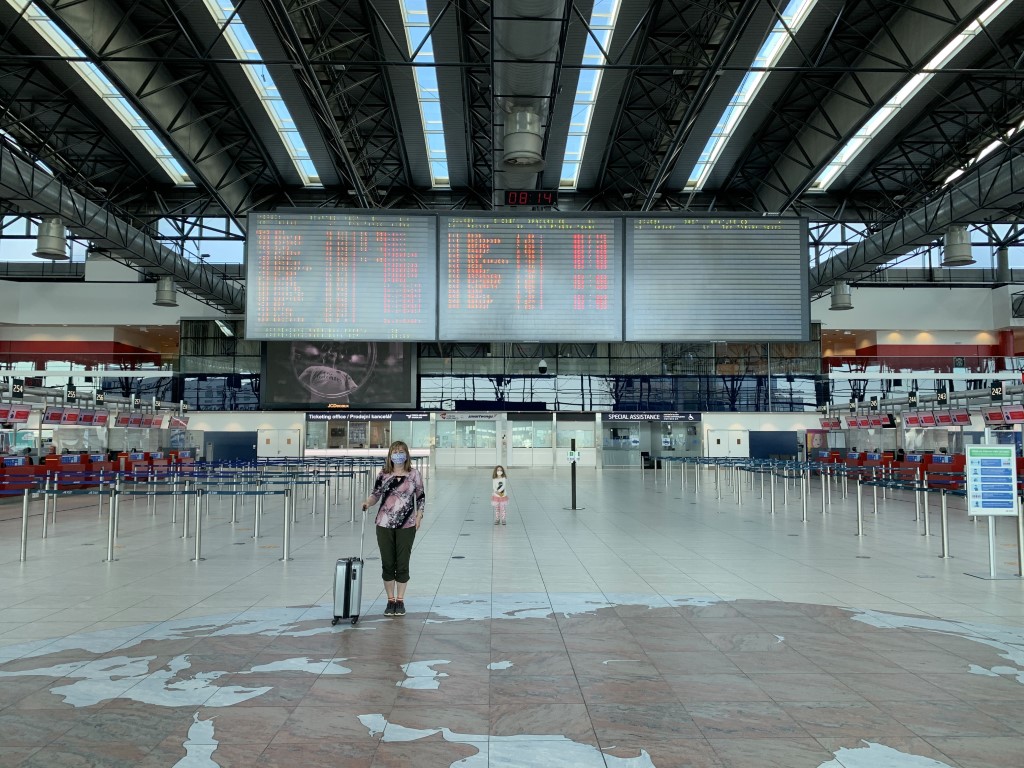 The bus dropped us off at a deserted Prague Airport arrivals area.