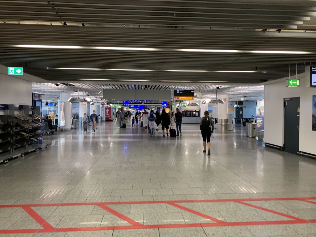 The Schengen concourse in Frankfurt area is a little busier than it was a couple of weeks ago but still generally empty.