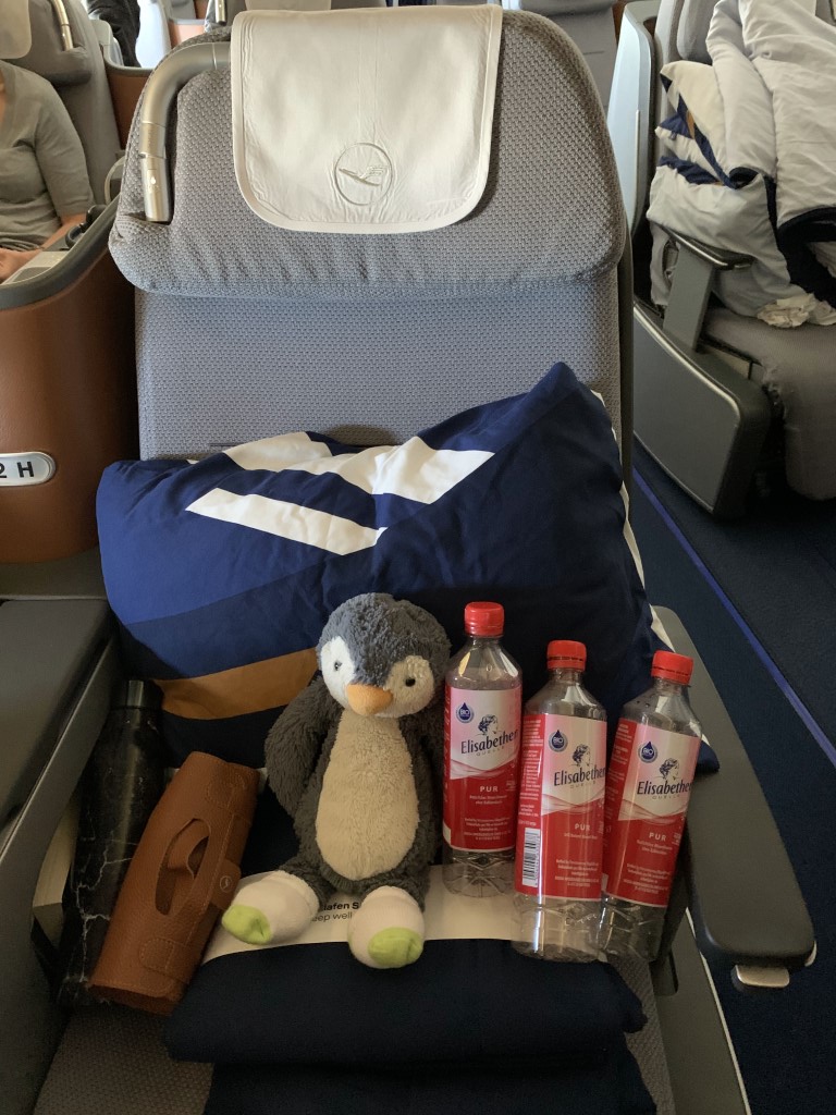 Here’s my ride to Vancouver this afternoon. An Airbus A330-300 with 255 seats. There are 110 passengers on board today. It’s a bit more than I expected given that Lufthansa just resumed service to Vancouver last week. All passengers had their temperature taken at the gate.