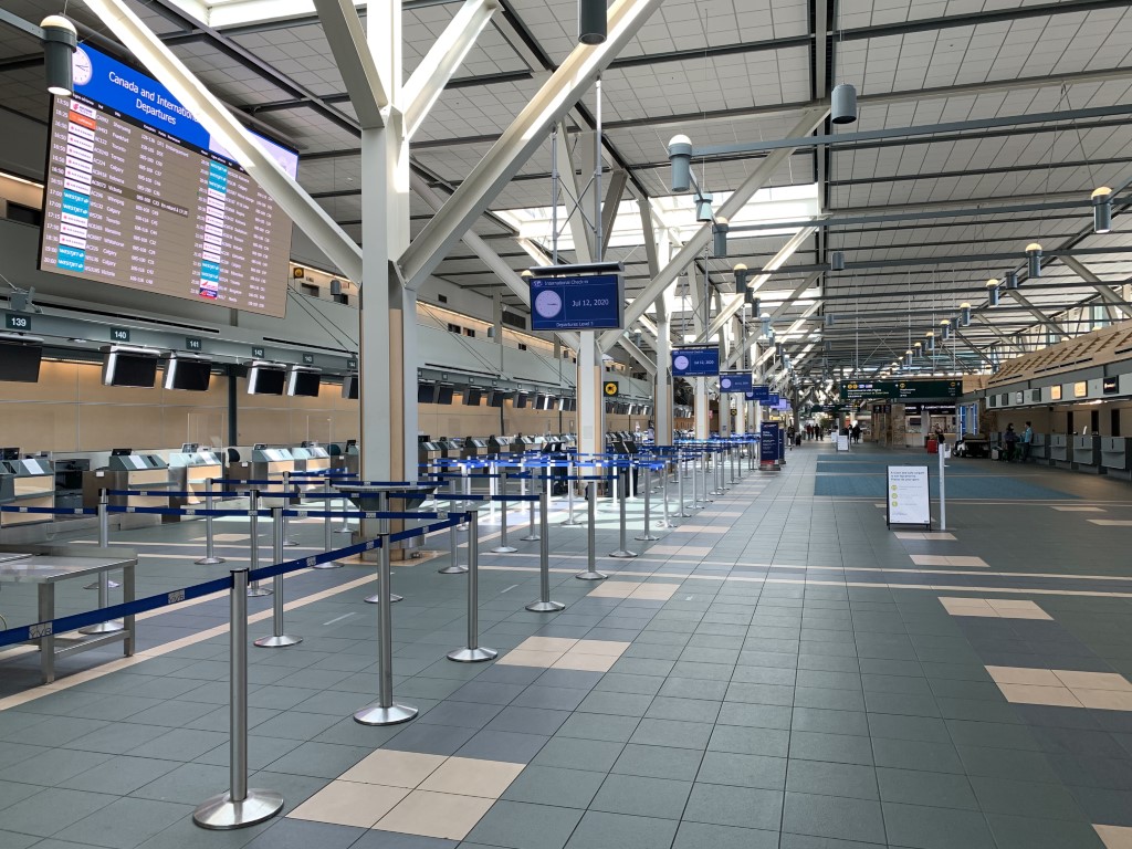 Here’s the secure area above the international concourse leading you to CBSA passport control. I was the first person off our plane and thankfully so, as I could also see a flight from China pulling in to a gate nearby. All travellers arriving in Canada have to provide contact information on arrival so that officials can follow up for various reasons, the big three being to ensure that you are in an appropriate isolation spot, to ensure you’re not sick, and to assist in contact tracing. There’s an app that was produced to eliminate the use of paper forms. I diligently filled it out onboard and was awaiting the final step, which was to enter a code which would be visible in the airport on arrival. We were told shortly after this photo that the app wasn’t working and everyone would need to fill out paper forms at some make shift folding tables in the hallway near the escalators. Your Canadian tax dollars at work. I quickly filled out the form and came around the corner to an utterly deserted CBSA hall. There’s usually hundreds of people in here. I was the only non-staff person in here at this time.