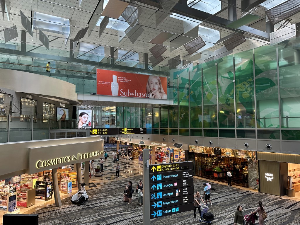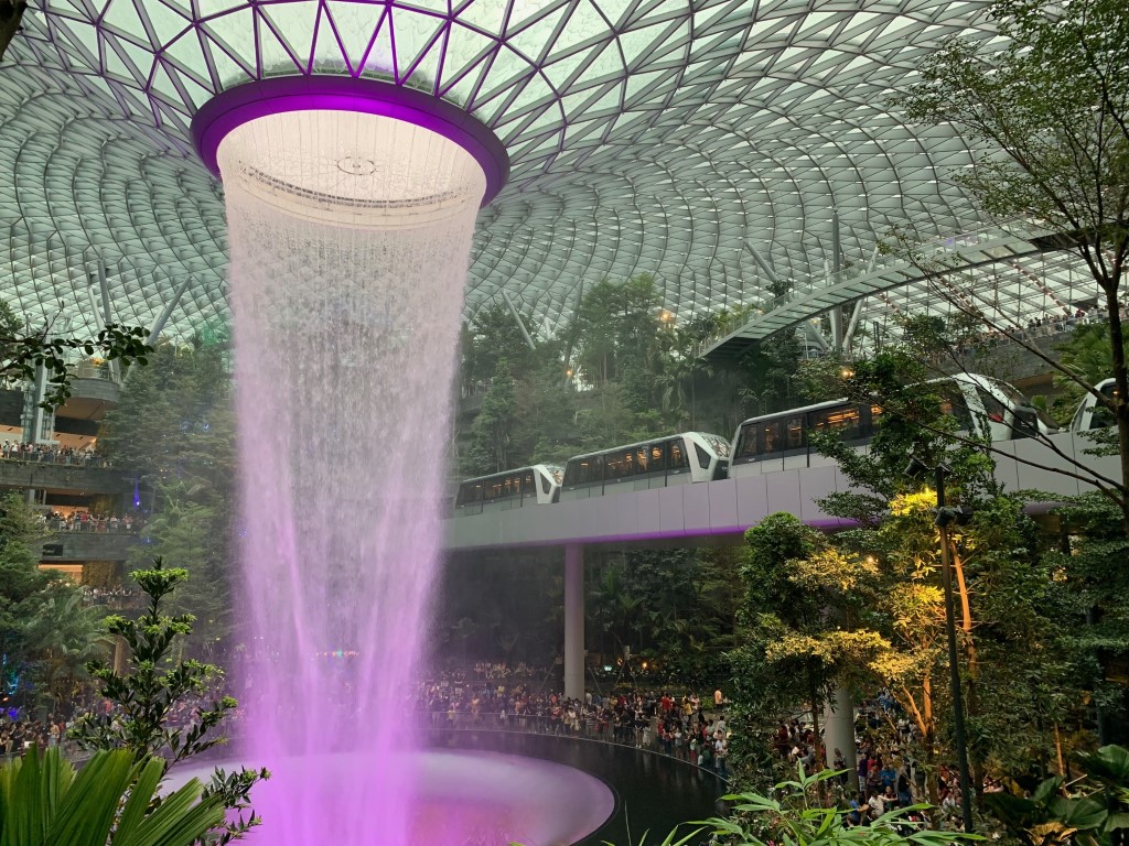 After a quick ride down one of Singapore’s gorgeous expressways – it really is a city in garden – I’m back at Changi Airport. In the background of the drop off area for Terminal 3 is Jewel, which I visited in 2019. It is really an incredible space !
