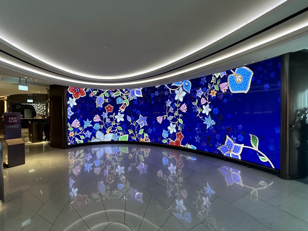 Here’s the electronic batik wall at the entrance to the lounge complex.