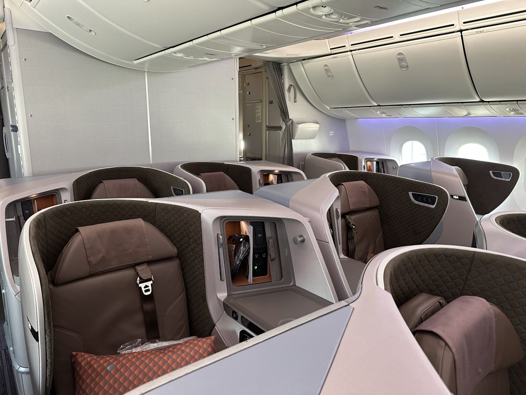 The last 2 rows of business class are empty, so we’ve got it all to ourselves.