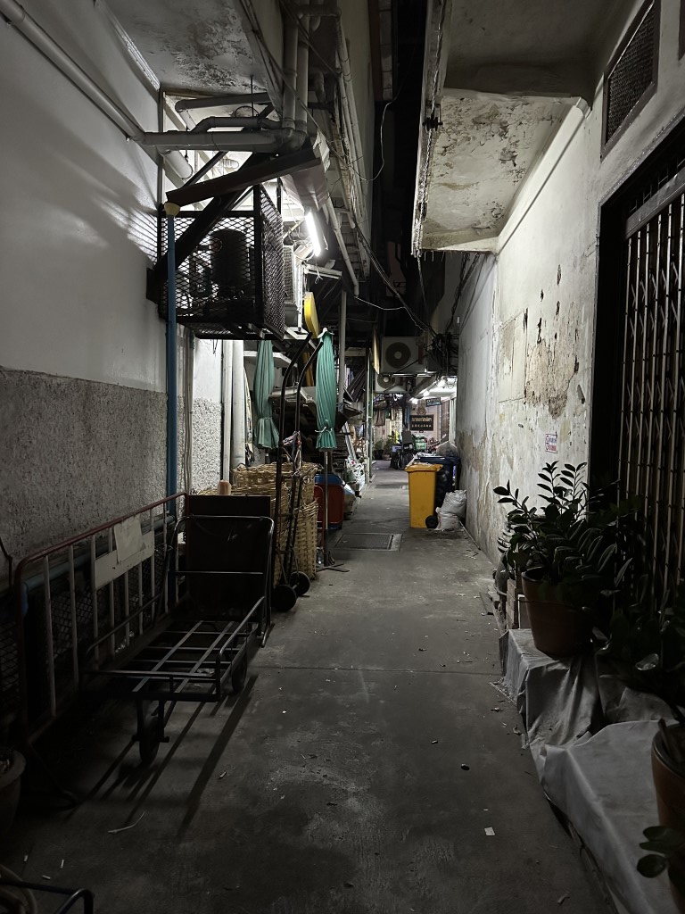 After navigating a gauntlet of prostitutes in front of a few of the hotels on the main strip, I peel off onto this much quieter side street.