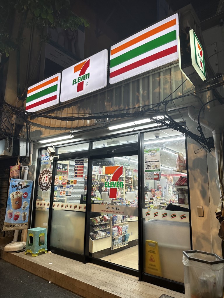 And of course, more hookers. I’d been to Bangkok before, but that was when Ellie was two and a half, so we weren’t out late in the evenings at all and I also wasn’t alone. I found the amount of hookers overwhelming, but I also guess I fit their target market exactly. After all that, I’m in a quieter area so pop into the quintessential Thai shop for everything – 7-Eleven – and grab a cold drink.