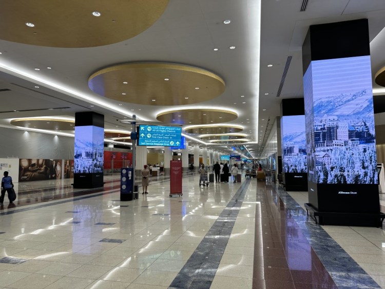 I didn’t notice until just now, but the ad on the digital pillar displays in the first class check in area when I snapped this pic was off the Banff Springs Hotel !