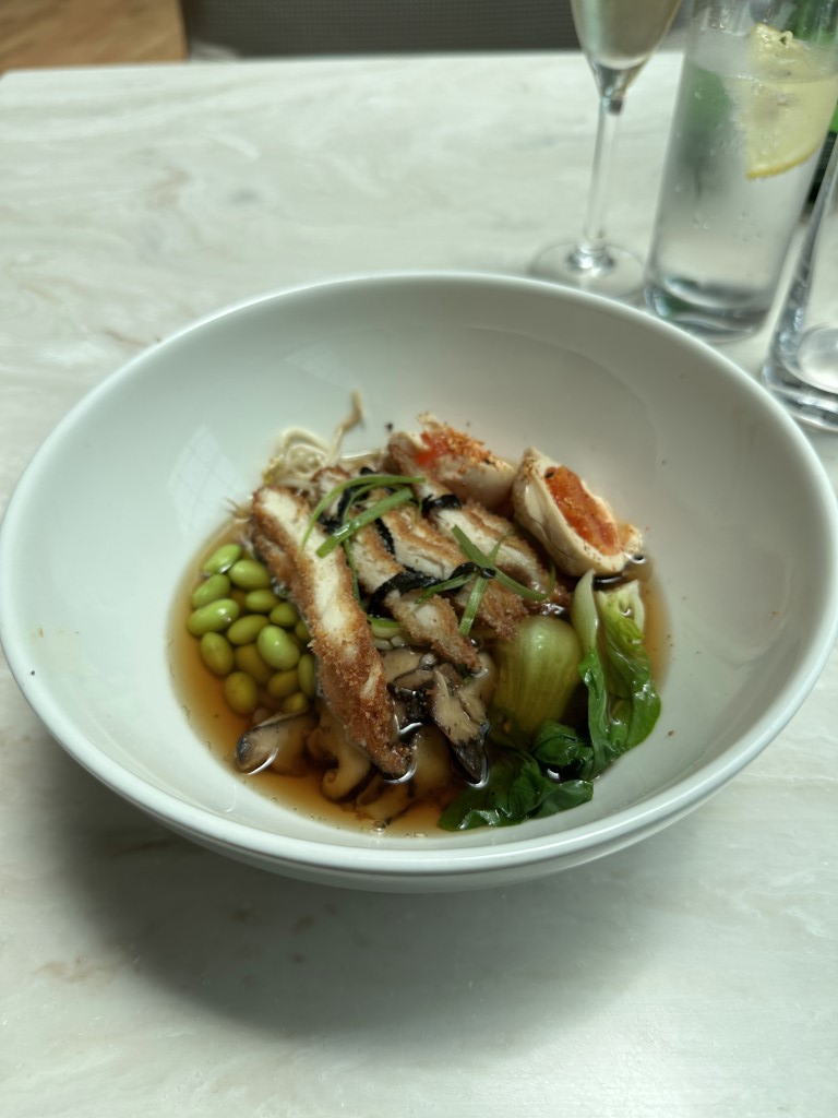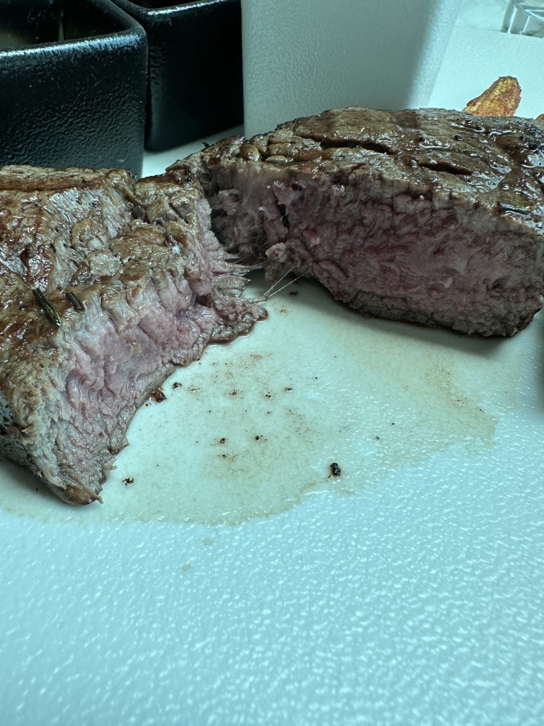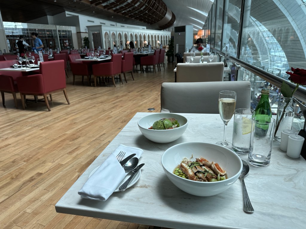 I had ramen, an avocado and mixed greens salad, and a Wagyu steak. It was all very, very good. I’ve found previously that it’s hard to get this blue tint out of photos from inside DXB T3 due to the way the window tinting works, so the food was actually much better looking in person than in some of these photos.