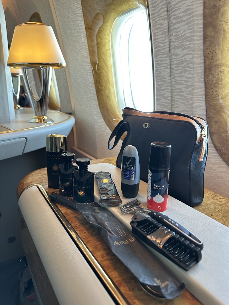 The amenity kits on Emirates first class are really something else. The amenities are certainly not cheap, and not something you leave behind on the plane.