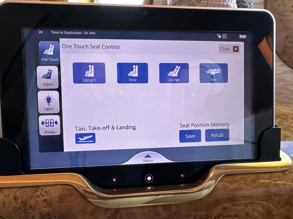 Here’s a look at the tablet that controls many functions, including the IFE and your seat.