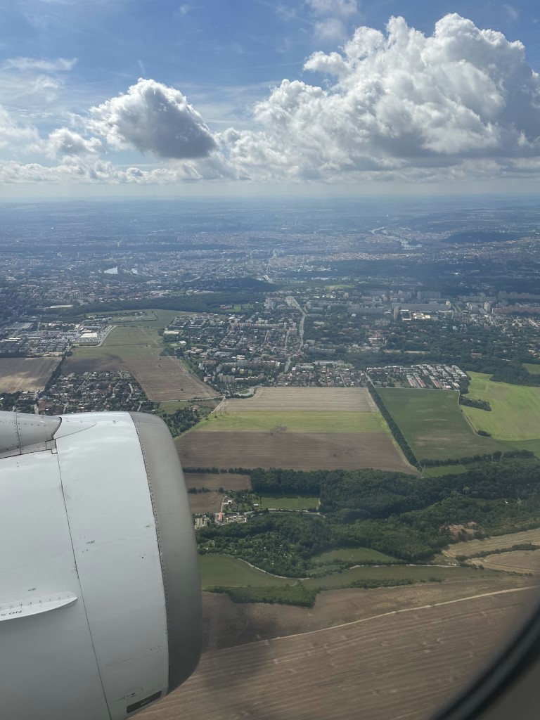 I wake up and we’re already over south eastern Germany and it looks like a nice evening through the filthy windows as we approach Frankfurt from the east.
