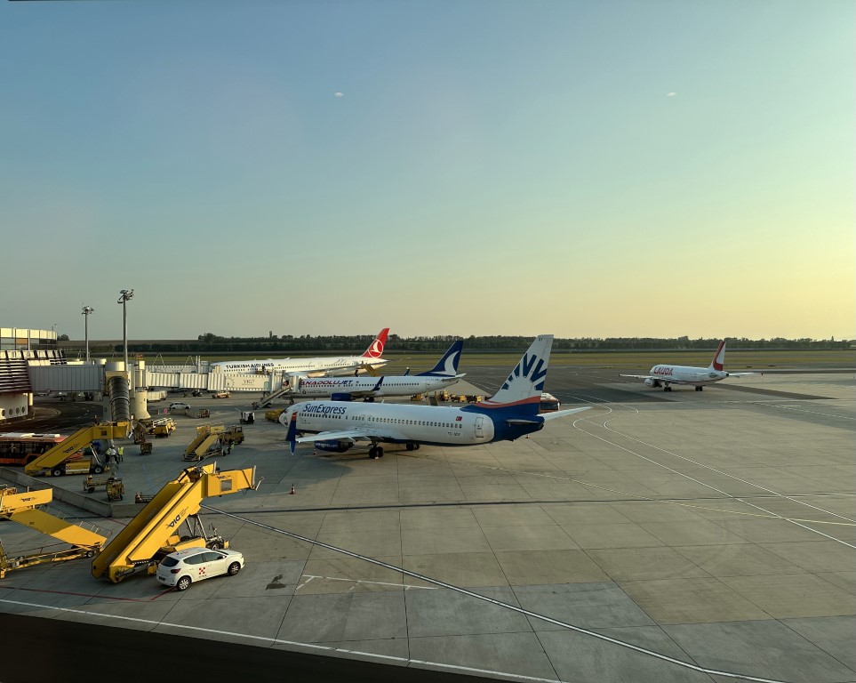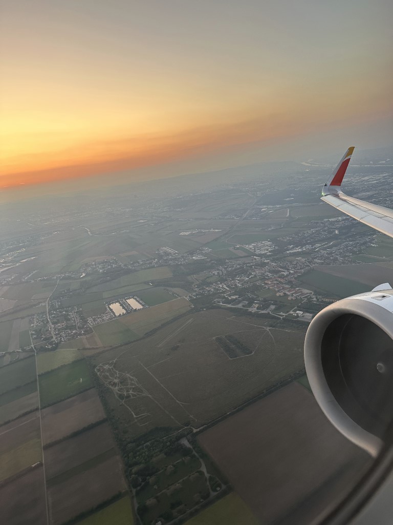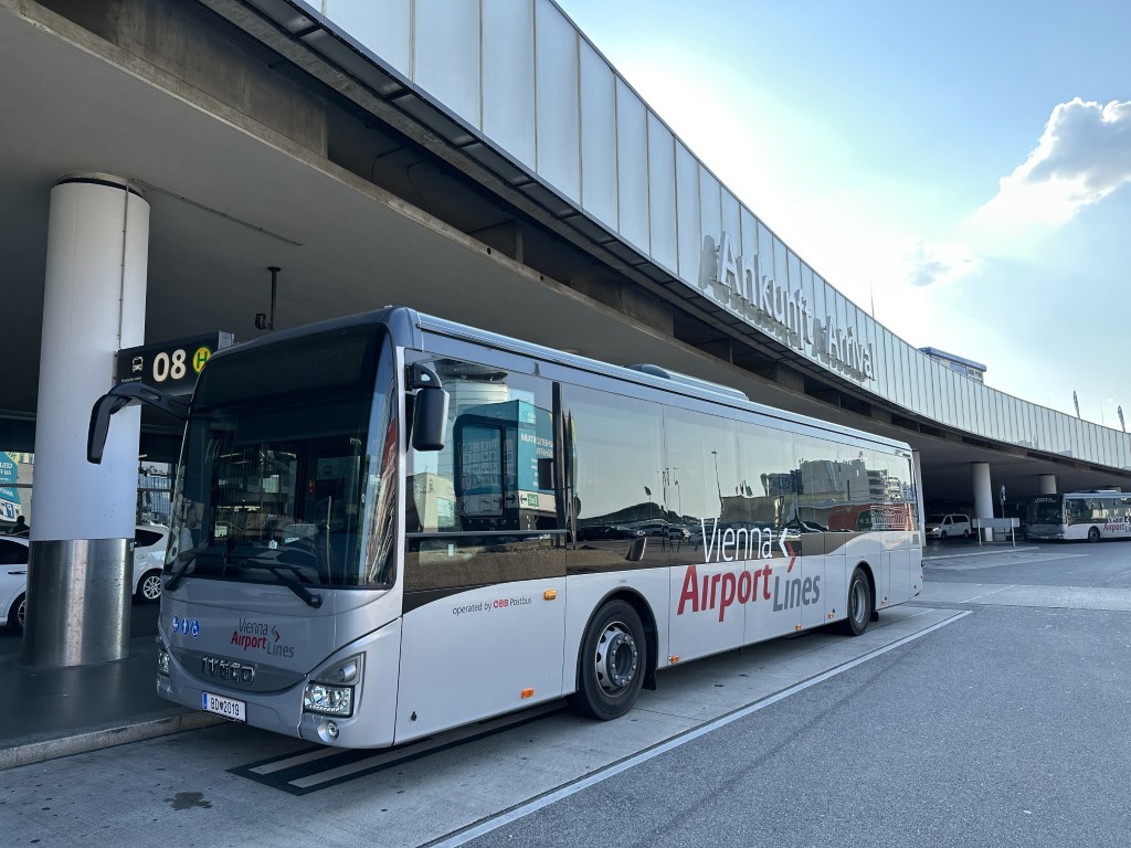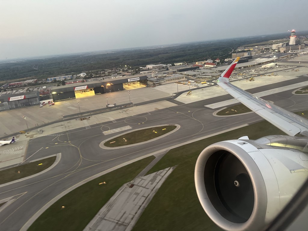 After a far too short stay in Vienna, we’re back at the airport, but via the airport bus for the first time. I didn’t feel like struggling with getting the luggage on and off the train twice, so the bus was very convenient – and air conditioned!