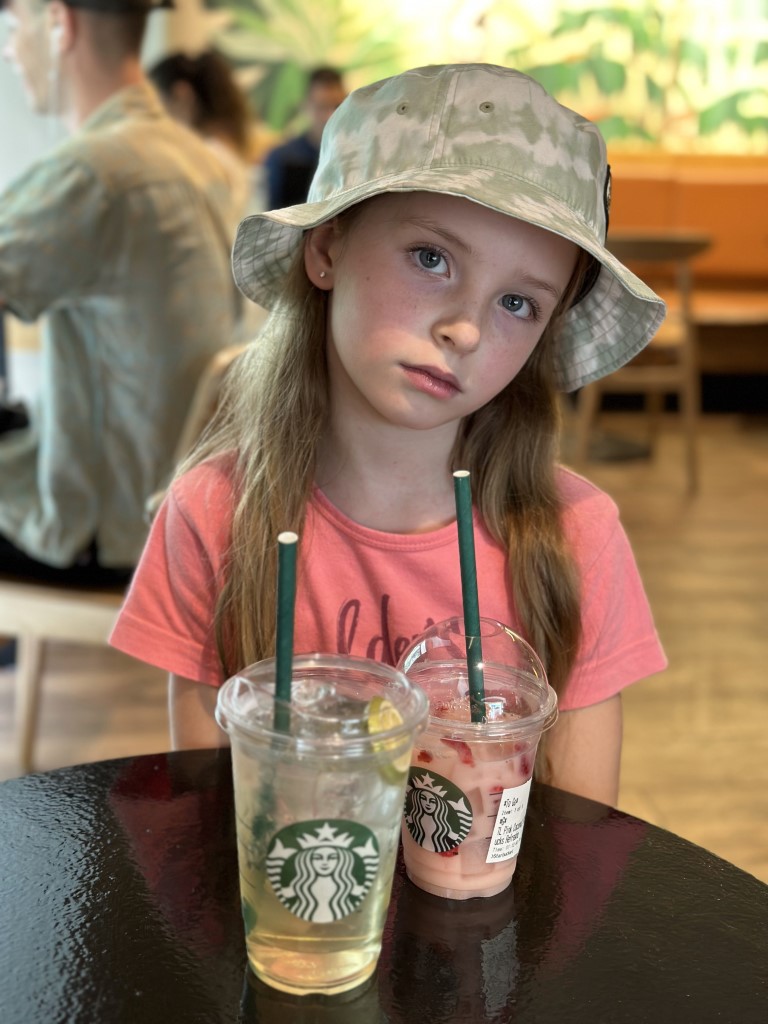 Ellie requested a “pink drink” when we walked by Starbucks.
