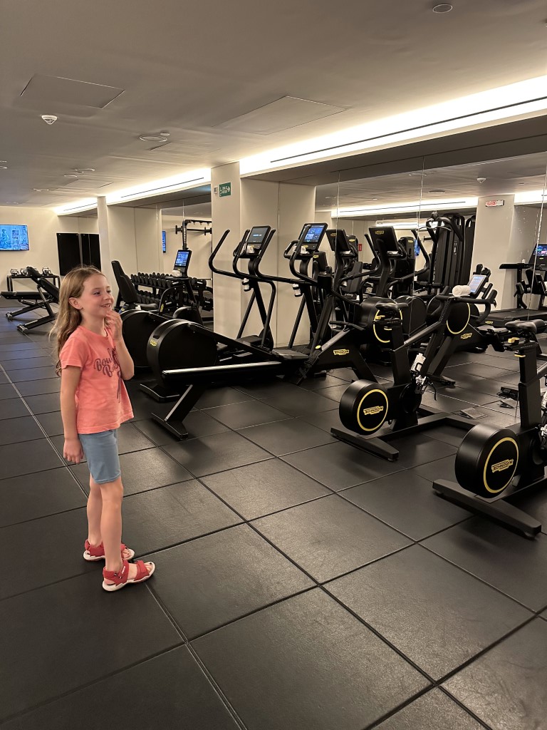 Ellie wants to check out the gym, and ponders which machine she wants to use. Thankfully she forgot about this idea.