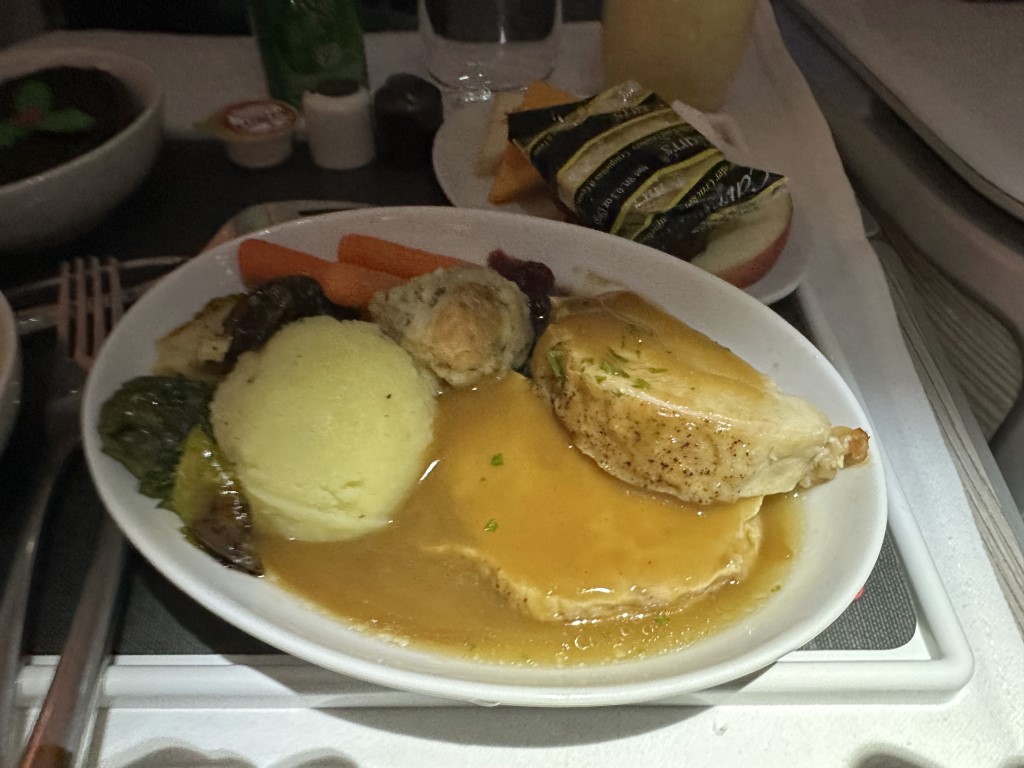 I was a bit surprised that there was no Christmas themed meal offering in the lounge, but onboard there was. Given that I’d had dinner almost 4 hours ago by this point, I decided to try it.