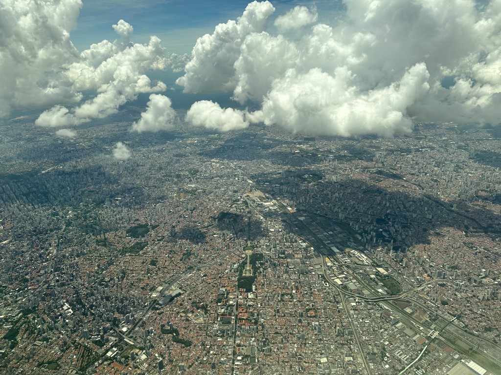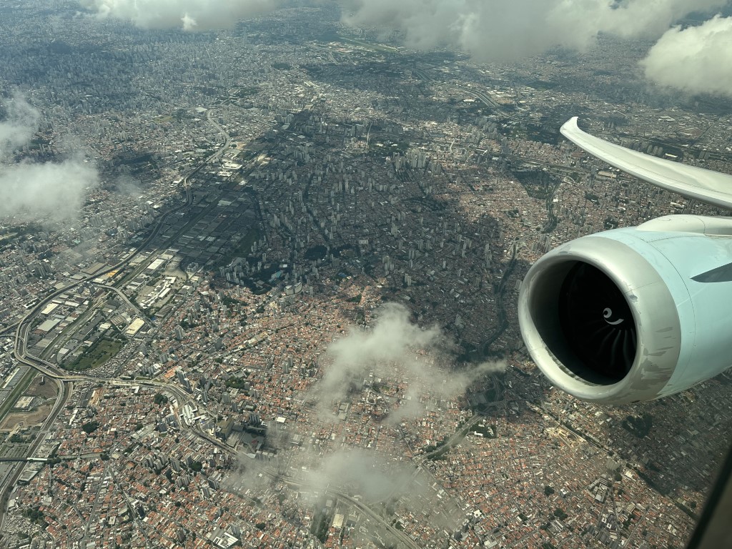 We arrived in Sao Paulo Guarulhos airport for a stop for cleaning, refueling and crew change, so had to get off the plane for about an hour while all this took place. Then left again up and over this huge city.