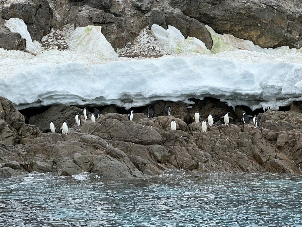 The rocky area was a small island that harbored a ton of penguins, but around the corner was a penguin ski resort.