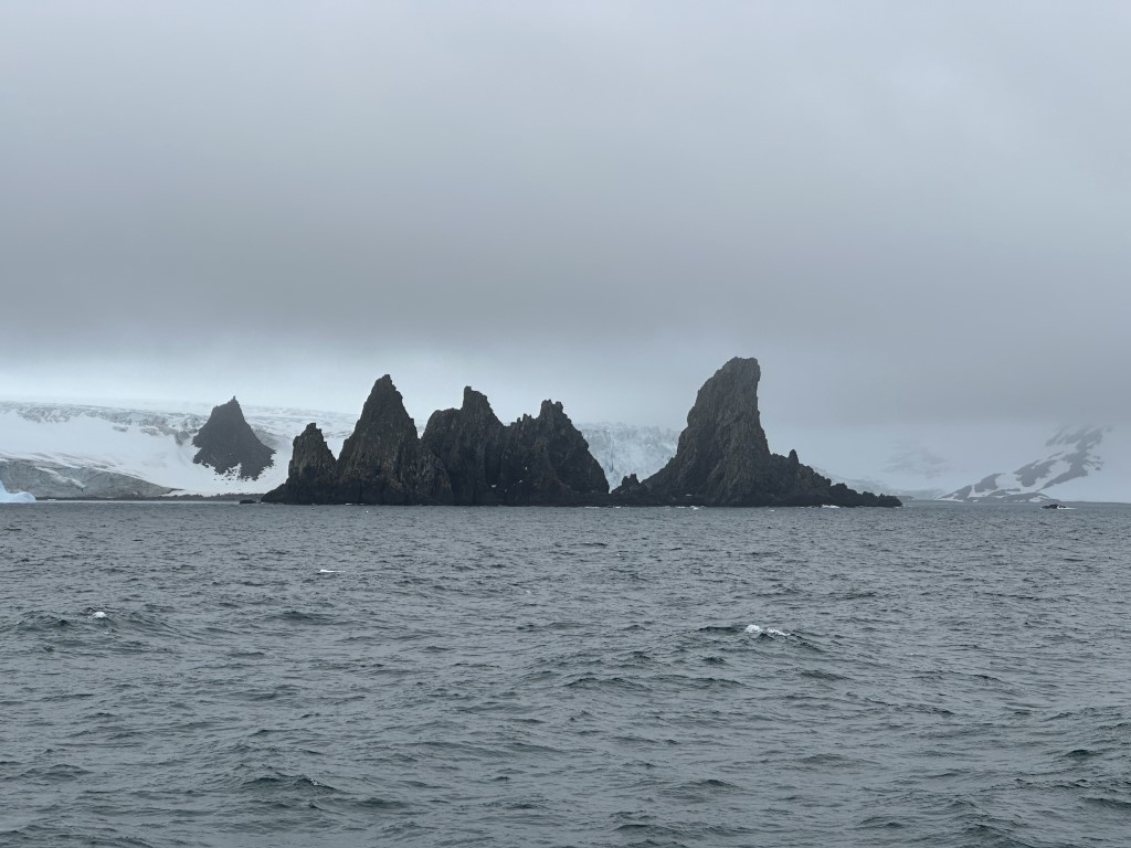 Then, back on to the ship for lunch and a traverse to Yankee Harbor. Passing more awesome scenery, including these rock pinnacles.