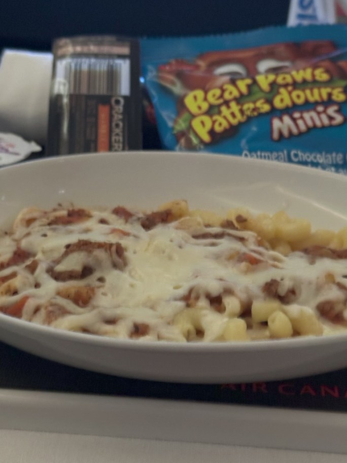 I had fancy Truffle Mac and Cheese while watching Dumb and Dumber since we got upgraded into the last seats in the middle section. It has been a very long time since I haven’t been able to look out the window on a flight. It felt different to watch something on a screen! Flavour was good but some spots were a bit dry…