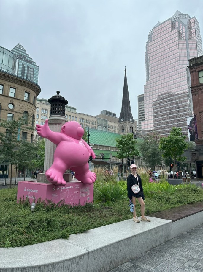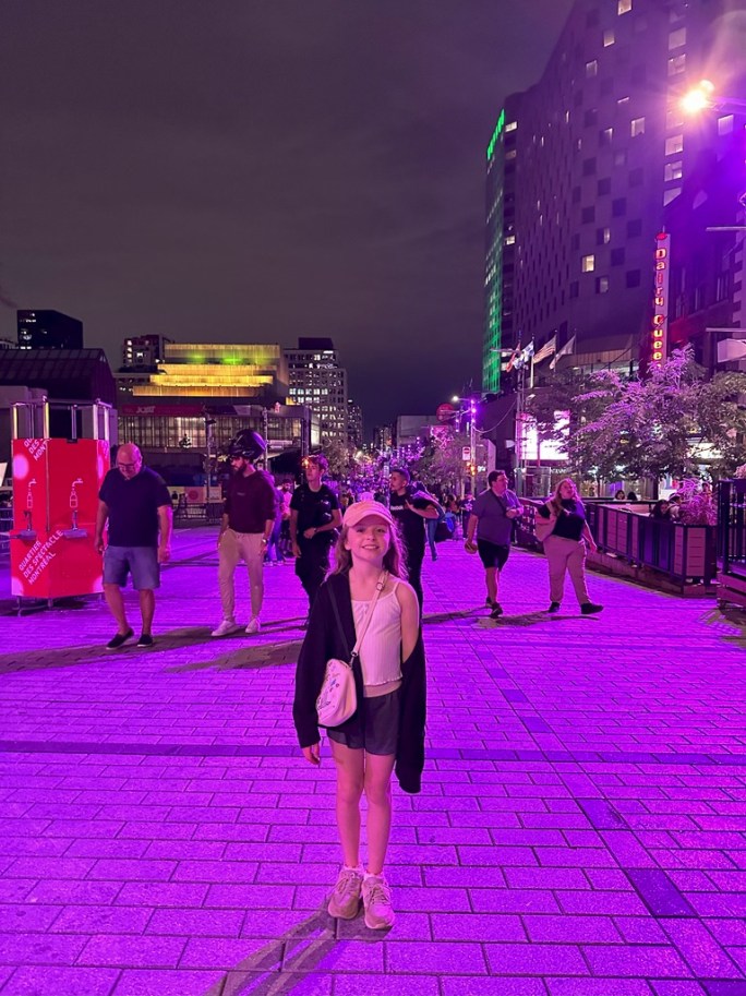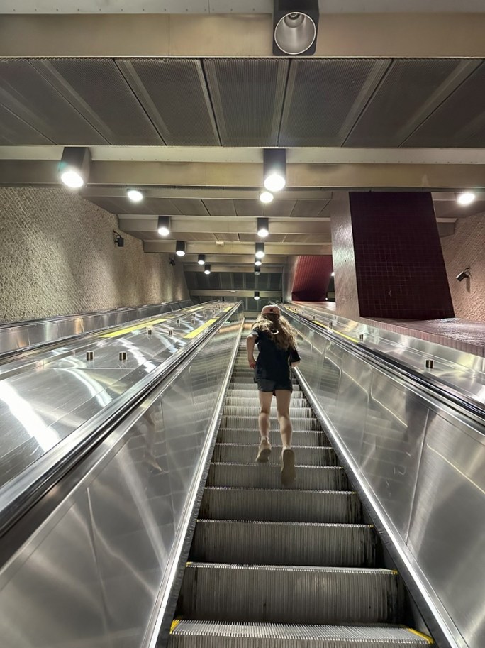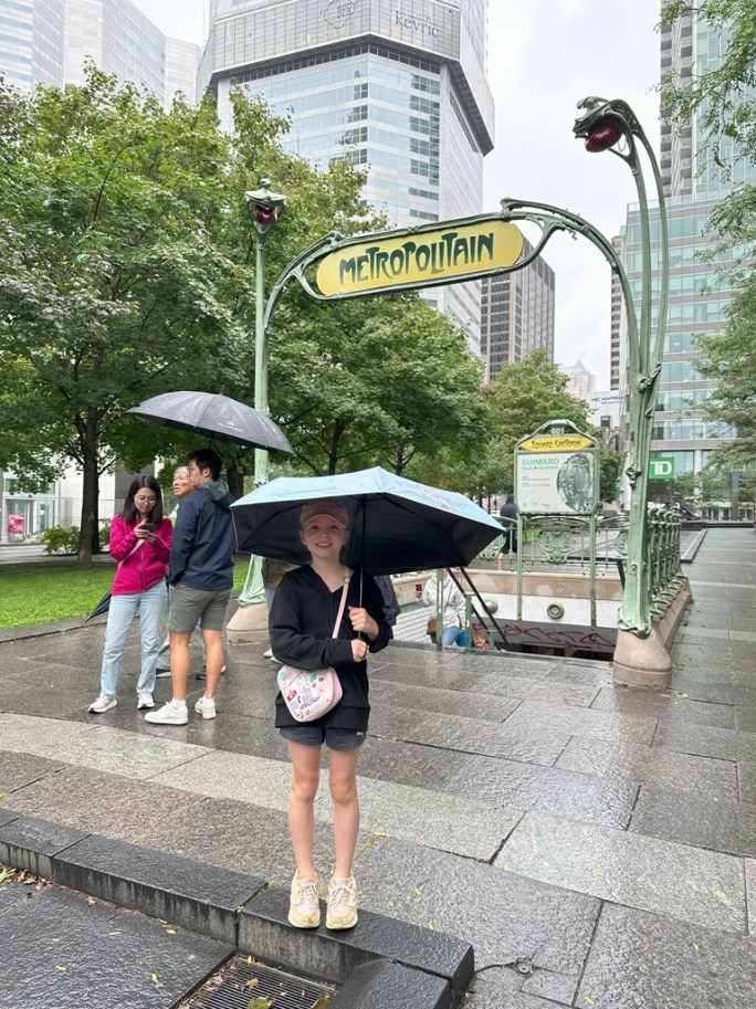 Ellie was still energetic to march up the long escalator at the Square Victoria metro station.