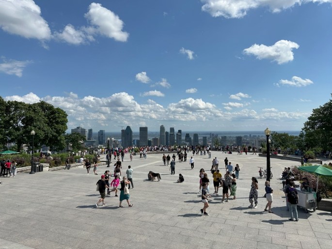 Up to the Kondiaronk Belvedere in front of the Mount Royal Chalet, with its postcard view.