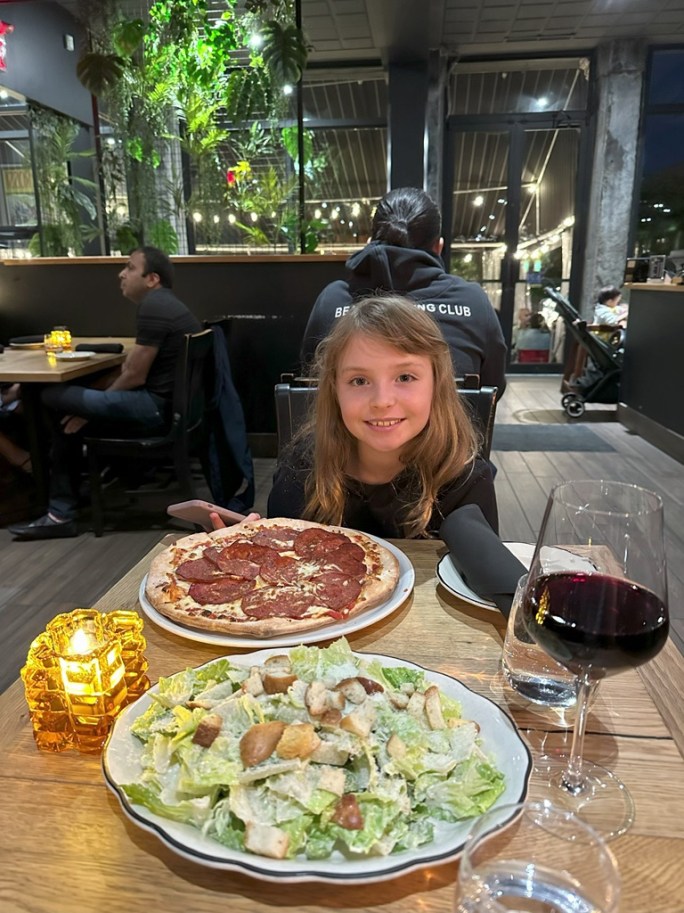 Ellie makes a face about the kids meal. But she ate most of it, so it couldn’t have been that bad.