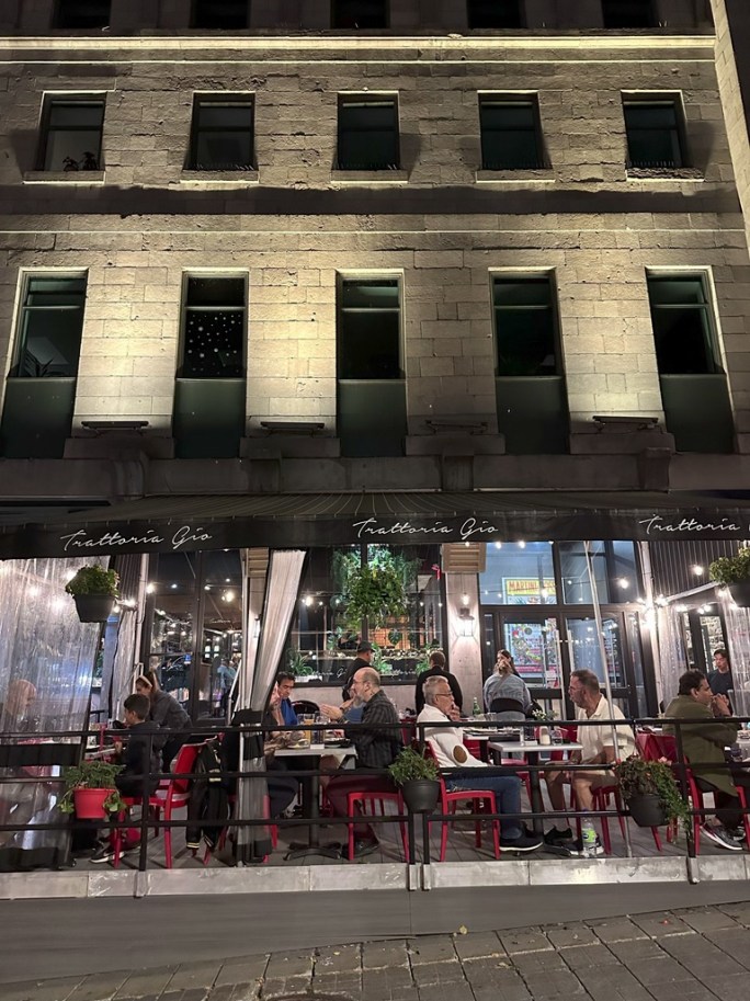 The restaurant was on St-Laurent Street, which had been turned into a pedestrian zone. We were pretty much right next door to Schwartz’s of Montreal smoked meat fame.