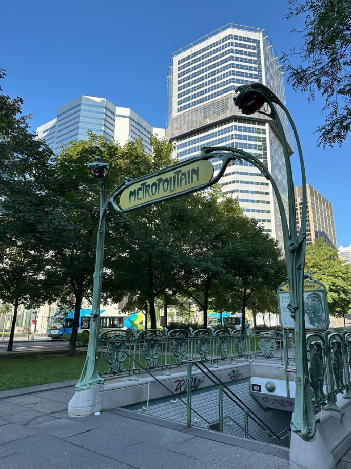 We were foiled before long and had to pop outside since part of the pedestrian network was closed on the weekend. This entrance to the Metro in Square Victoria is a good spot that can make some people think you’re in Paris!