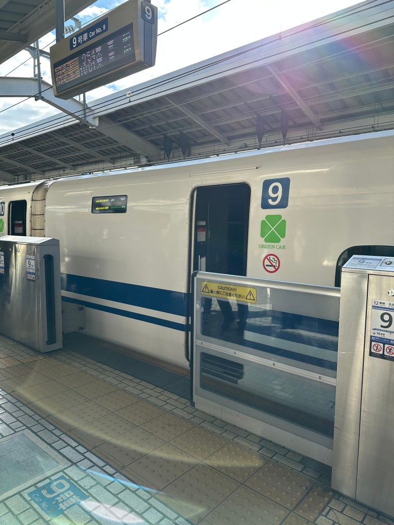 Well, here we are at our final Shinkansen journey of this trip, in Kyoto Station. Now that we had one of our big luggages with us, the Green Car was indispensable as there is a ton of overhead space for luggage and no need to worry about reserving seats that have access to a luggage storage area.
