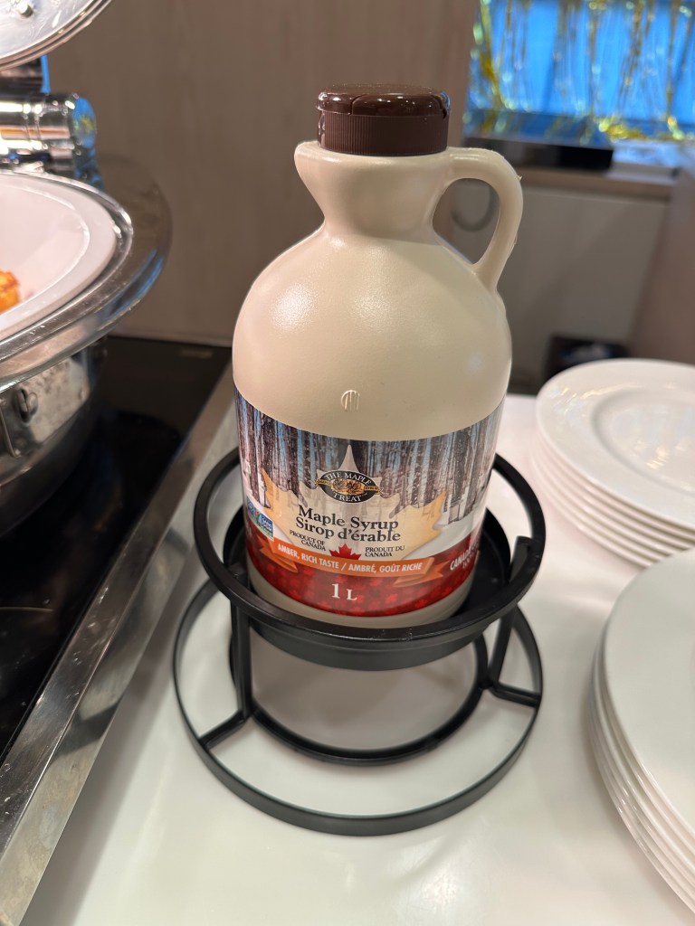 They had maple syrup right from Canada (bilingual label!!) beside the French toast station at the breakfast buffet!