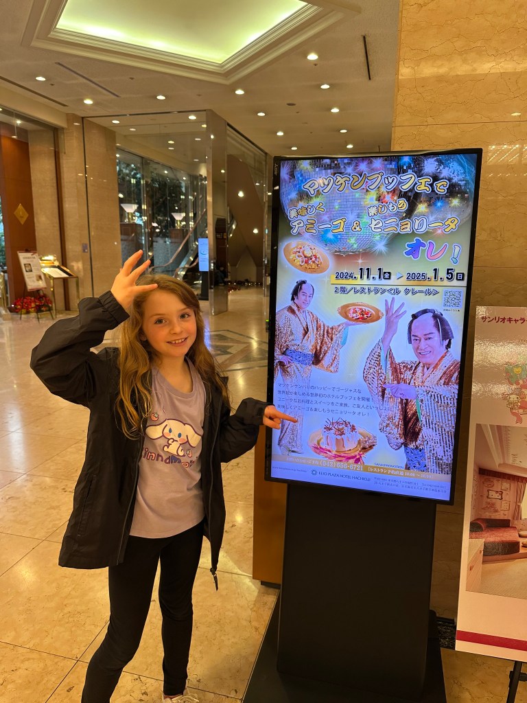 After long last, our luggage was safe and sound behind us in Shinjuku, and we made it to our hotel – Keio Plaza Hachioji. Given the VERY special room that I’d booked, it was well worth all the hassle. This girl just loved it!