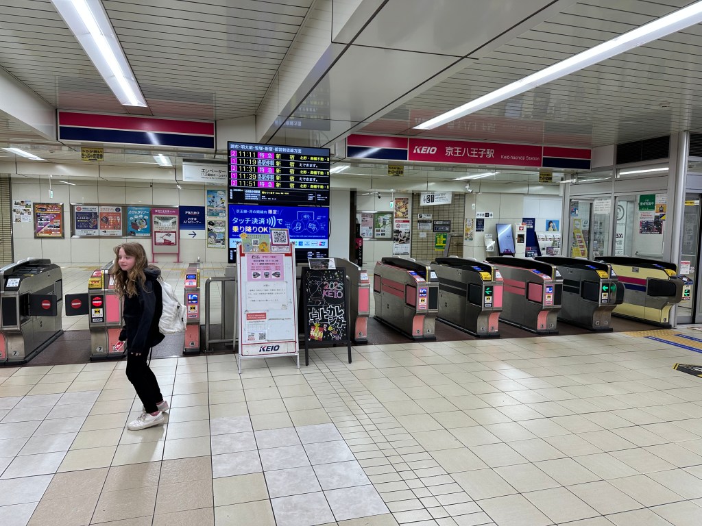So, remember how earlier on I stated that I’d shrewdly brought our second big luggage to the hotel we’d be staying at in Shinjuku on our last night in Tokyo (which is tonight)? Well, last night I was reviewing everything and came to the realization that I booked a different location of a local chain – and the correct hotel was a 40 minute train ride west of Shinjuku in Hachioji, a suburb. After fretting about it for a bit, I remembered that this was all correct as I’d ruminated about whether the diversion would be worth it when I was making the booking. I just had it stuck in my head that we were staying at the “downtown” location. It was too late to cancel it and book something more convenient, and it was a really special room, anyway, so I had to really put on my logistics cap to make this all work and not spend hours or many thousands of yen commuting all around Tokyo with an enormous array of luggage. Luggage shipment directly to the airport was not possible at this stage of the game unless I booked a private car to do it. And, our last night’s clothes that we needed was in the suitcase at the hotel down here in Shinjuku.
