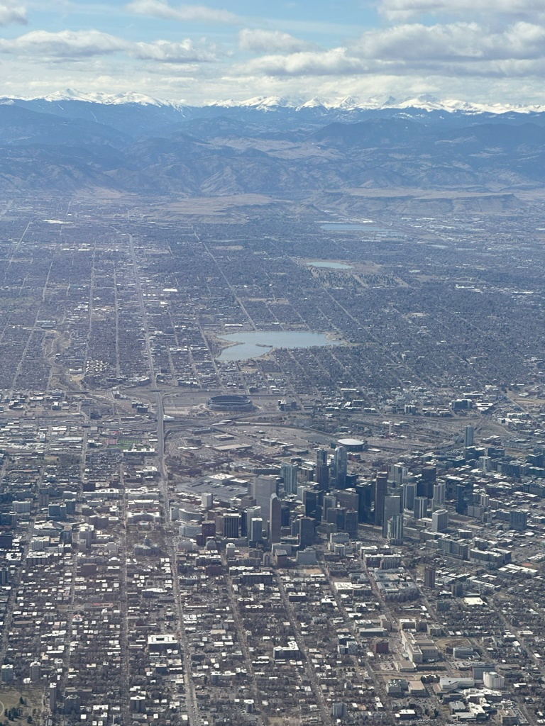 It’s amazing how similar Denver looks to Calgary, especially from the air. Suburbia, skyscrapers, and snowcapped mountains in the back beyond the brown hills.