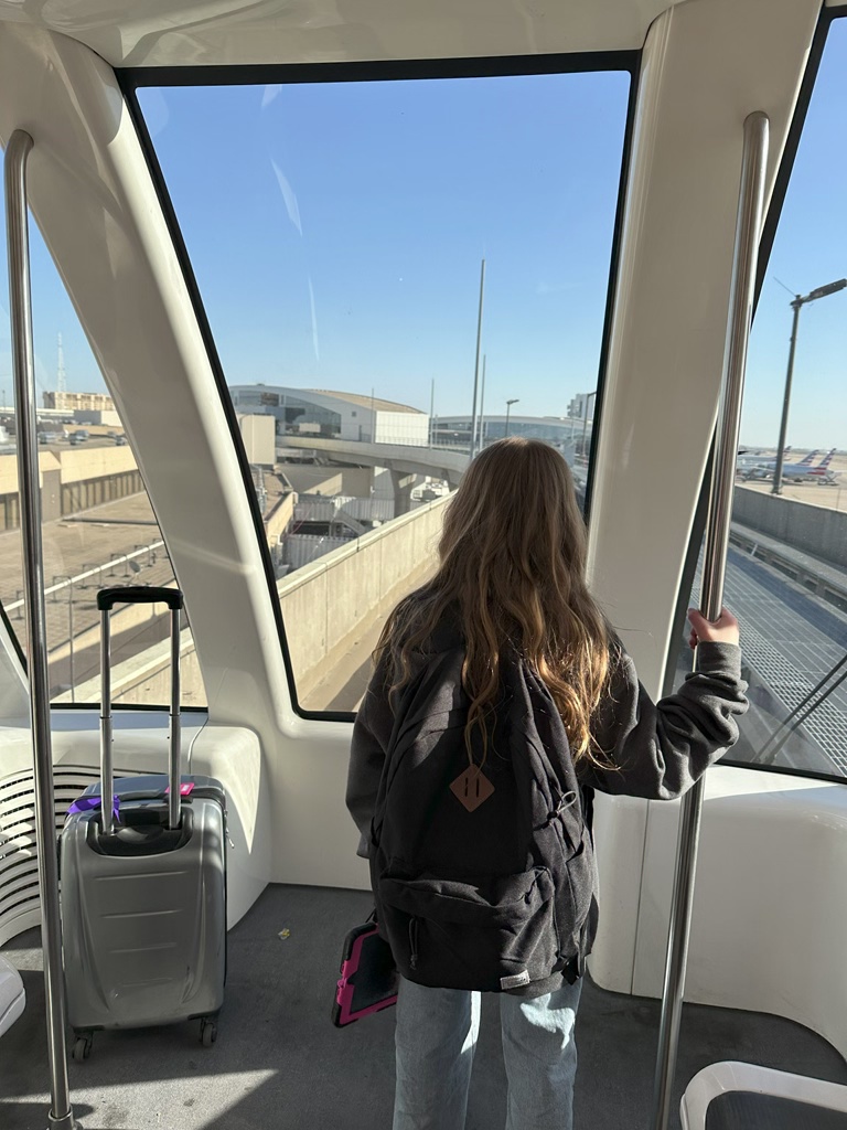 One of the great things about DFW is that it’s got great restaurants at the airport. So we’re going to take the SkyLink automated people mover train around to one of the other terminals to get a delicious meal.