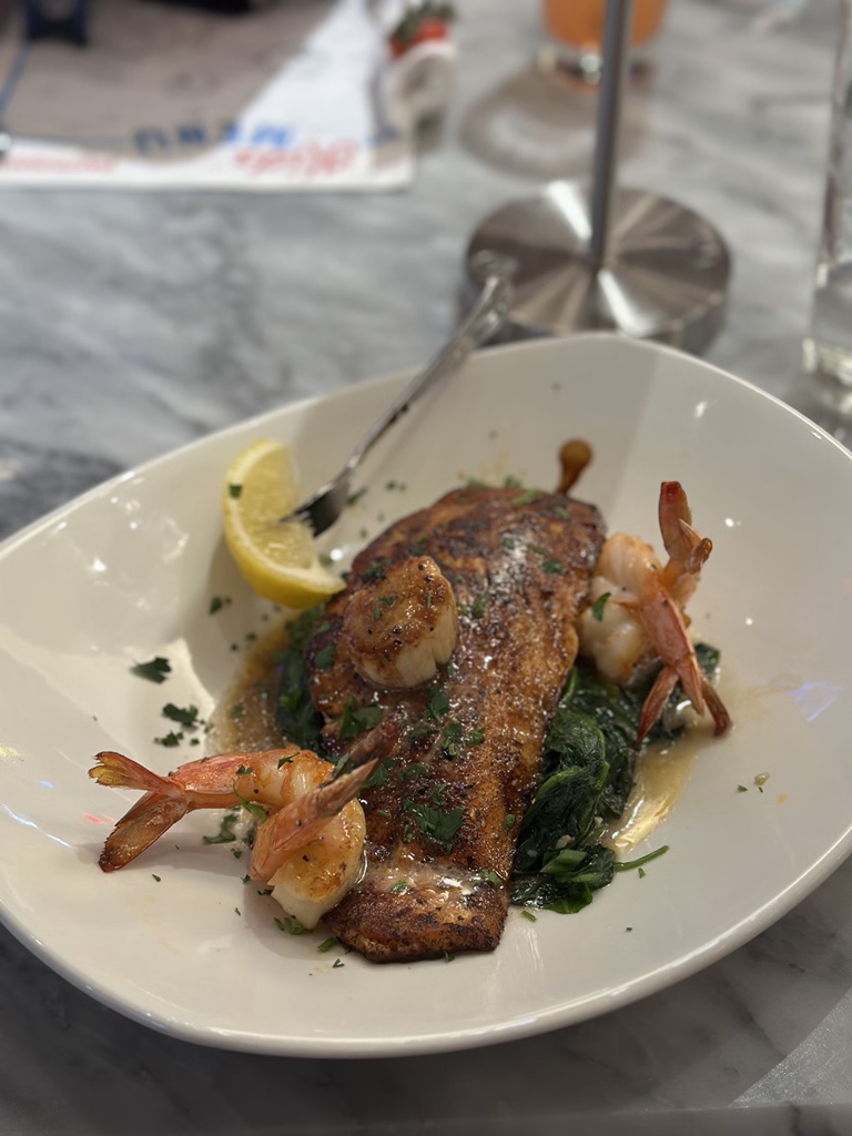 I got the salmon platter with scallops and shrimp.