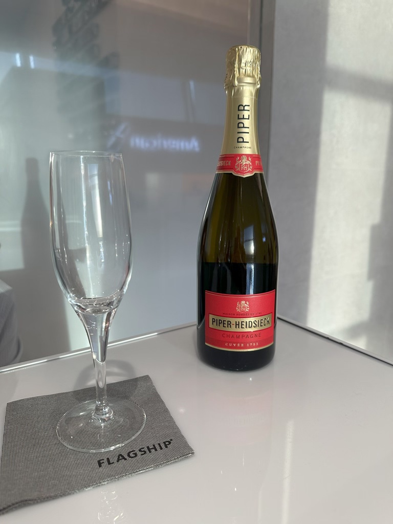 After both of our tummies were satisfied, we still had an hour to kill in the lounge before our flight so I had a few glasses of the nice champagne that they offer in the AA Flagship Lounge.