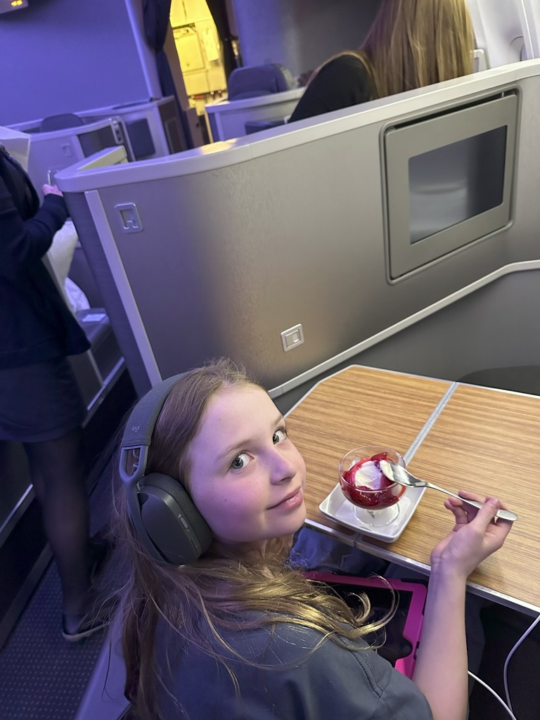 Ellie, still stuffed from Chick-Fil-A, made room for the AA ice cream – one of the best onboard desserts!