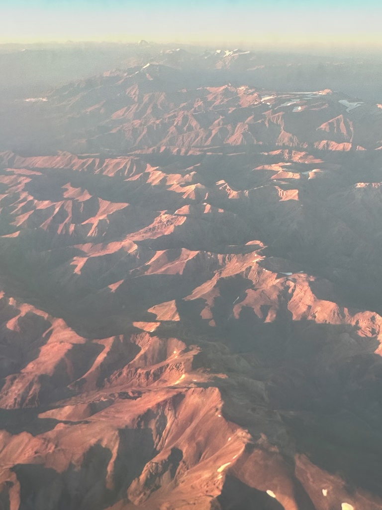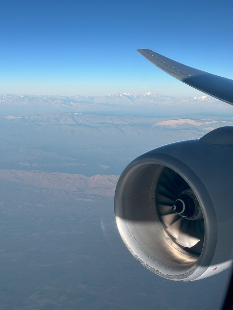 Aconcagua, the highest mountain outside of Asia, is visible south of us (it’s the snowcapped peak below the wing).
