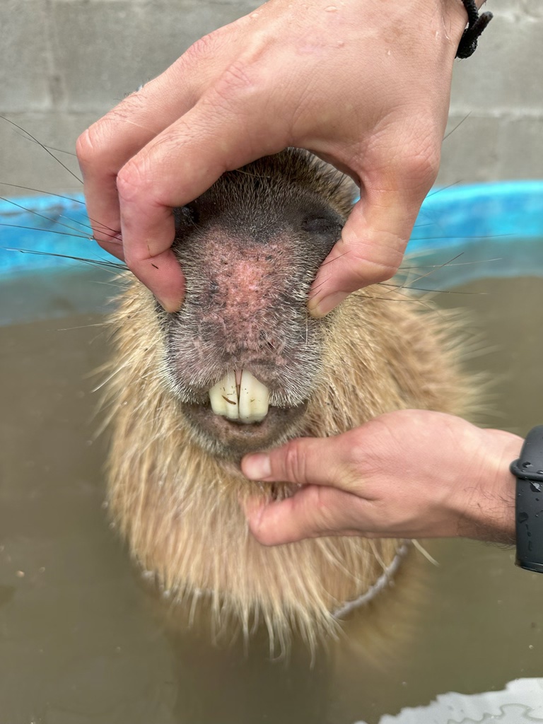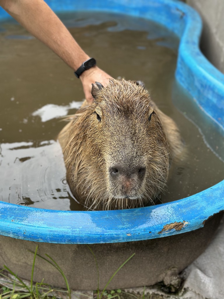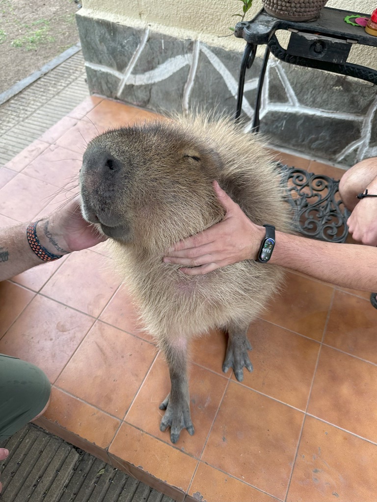 After taking a little breather and a shower, we headed over to his Mom’s place to meet Pipa – a huge capybara. Pipa was super chill!