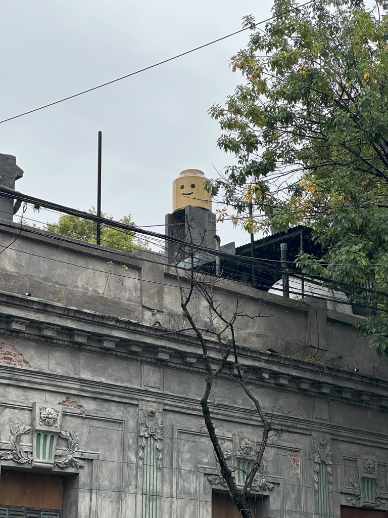 As we walked over to our final stop on the food tour, I spotted this rooftop vent fashioned as a Lego head. Cool!