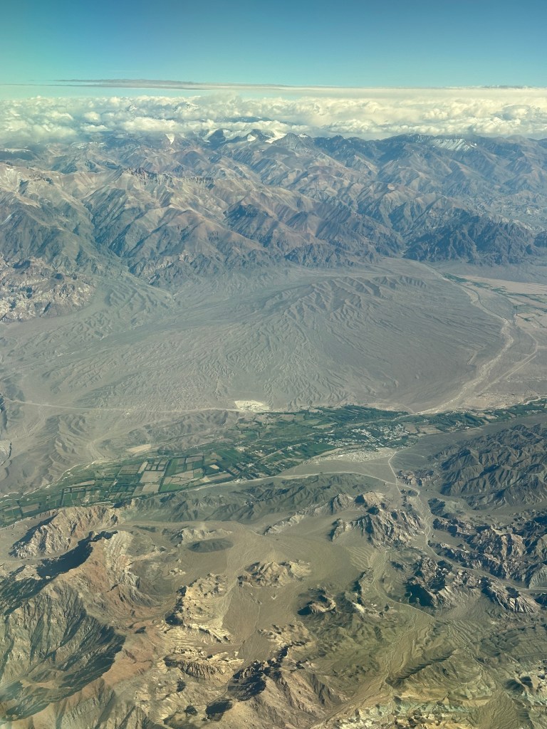 The flight was very pleasant and after the clouds of Brazil cleared up, we had some great views as we approached the Argentinian Andes, here flying over the Mendoza area.